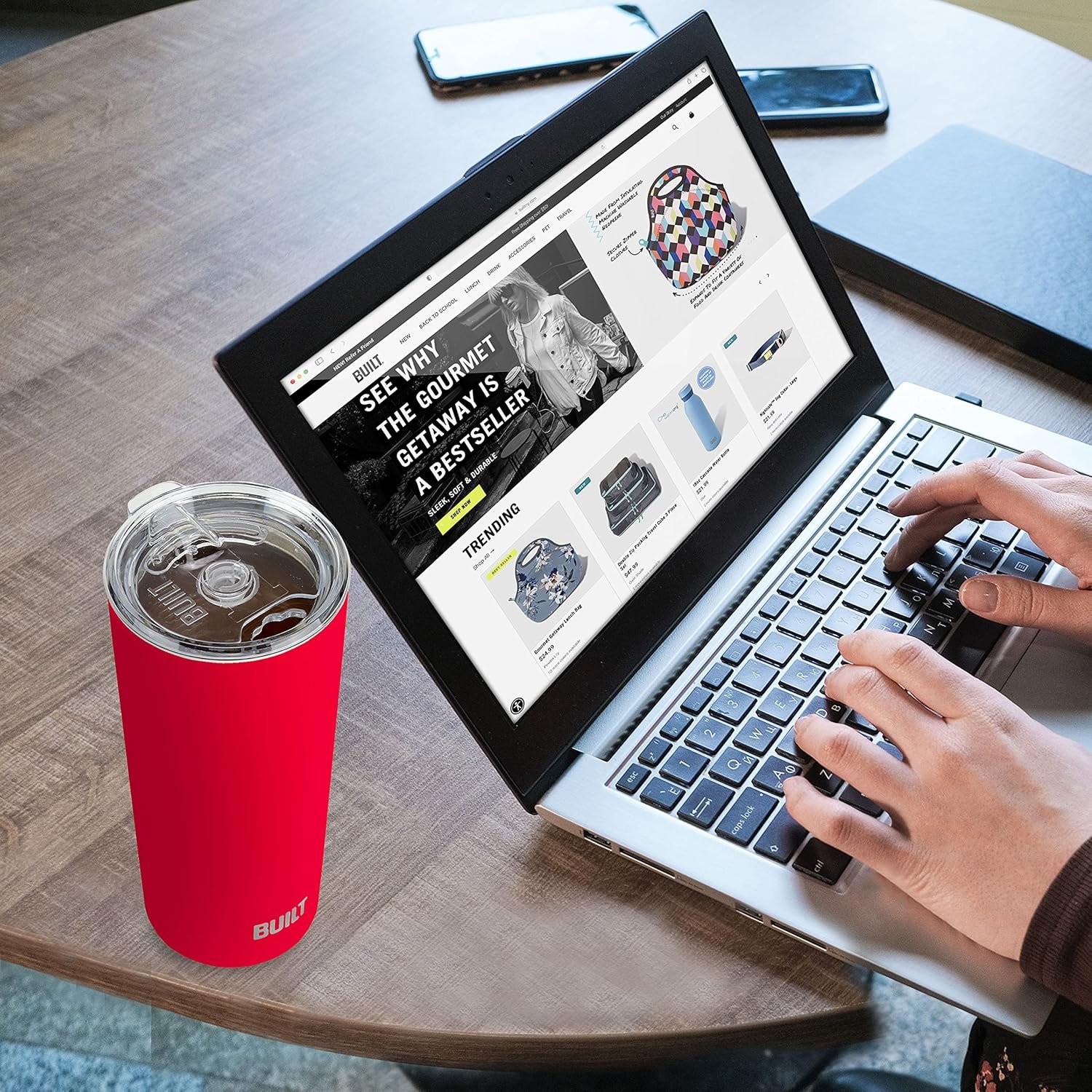 BUILT 20oz Water Tumbler – Stainless Steel Vacuum Insulated Tumbler with Lid, Double Wall Travel Tumbler – Durable, Reusable & Sustainable Steel Cup To Go Travel Coffee Mug (Red)