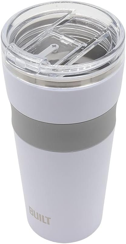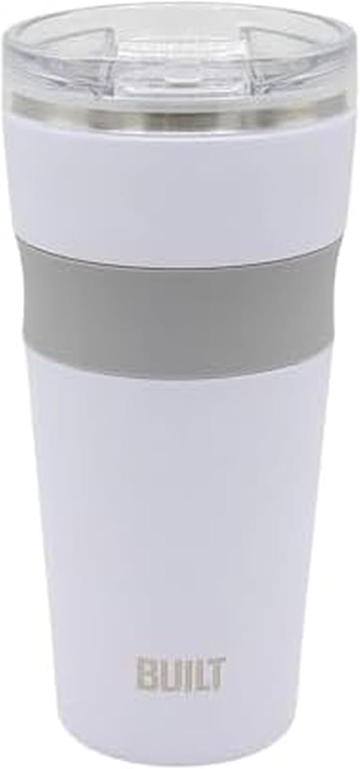 Built 24 Oz Insulated Travel Tumbler With Straw Lid – Reusable Stainless Steel Drinking Cup, Double Wall, Spill Resistant, Dishwasher Safe, BPA Free, Easy Grip, Leak Proof (White)
