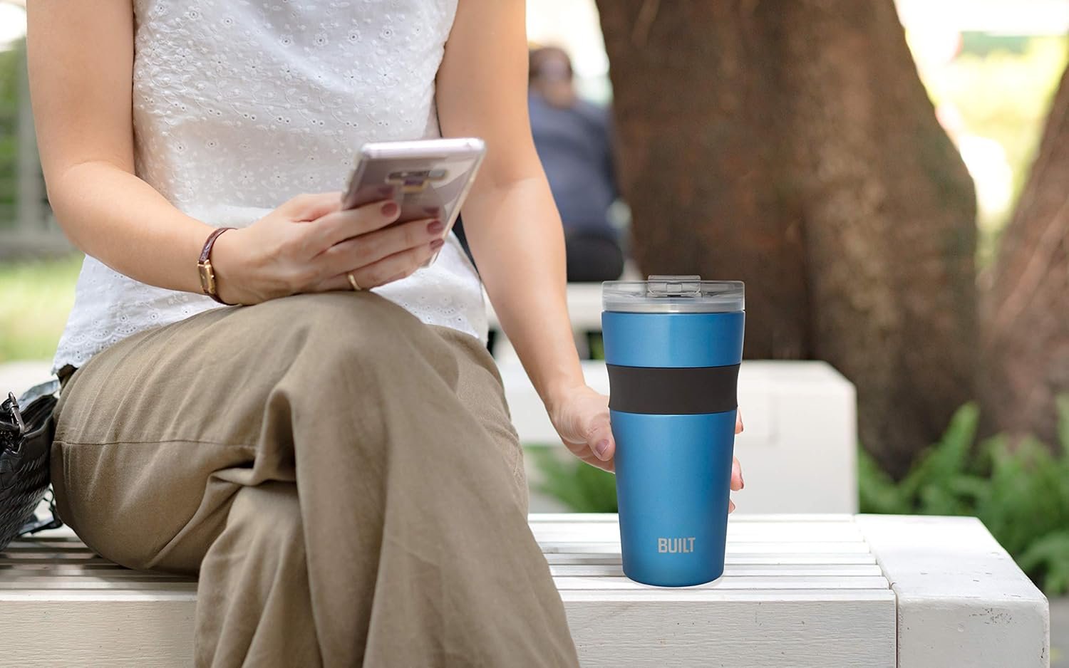 Built 24 Oz Stainless Steel Tumbler With Lid – Vacuum Sealed Insulated Drinking Cup With Straw Option, Spill Proof, Dishwasher Safe, Double Wall, Travel-Ready, Easy Grip (Blue)