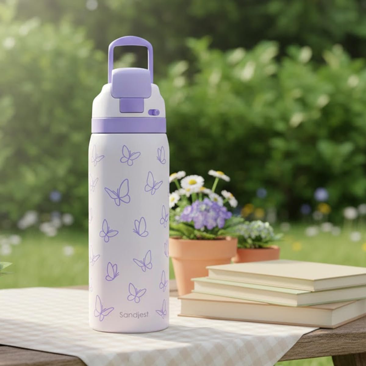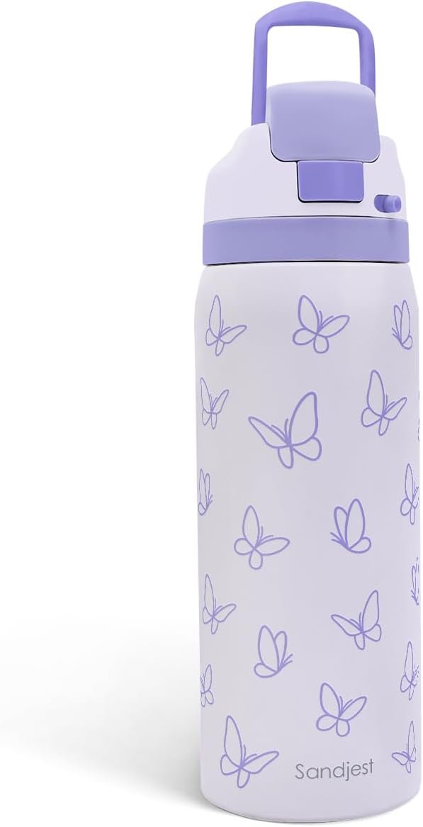 Butterfly Insulated Stainless Steel Water Bottle with Straw for Sports and Travel, 32oz, Gifts for Women Girls Friends Teens Birthday Christmas (Purple)