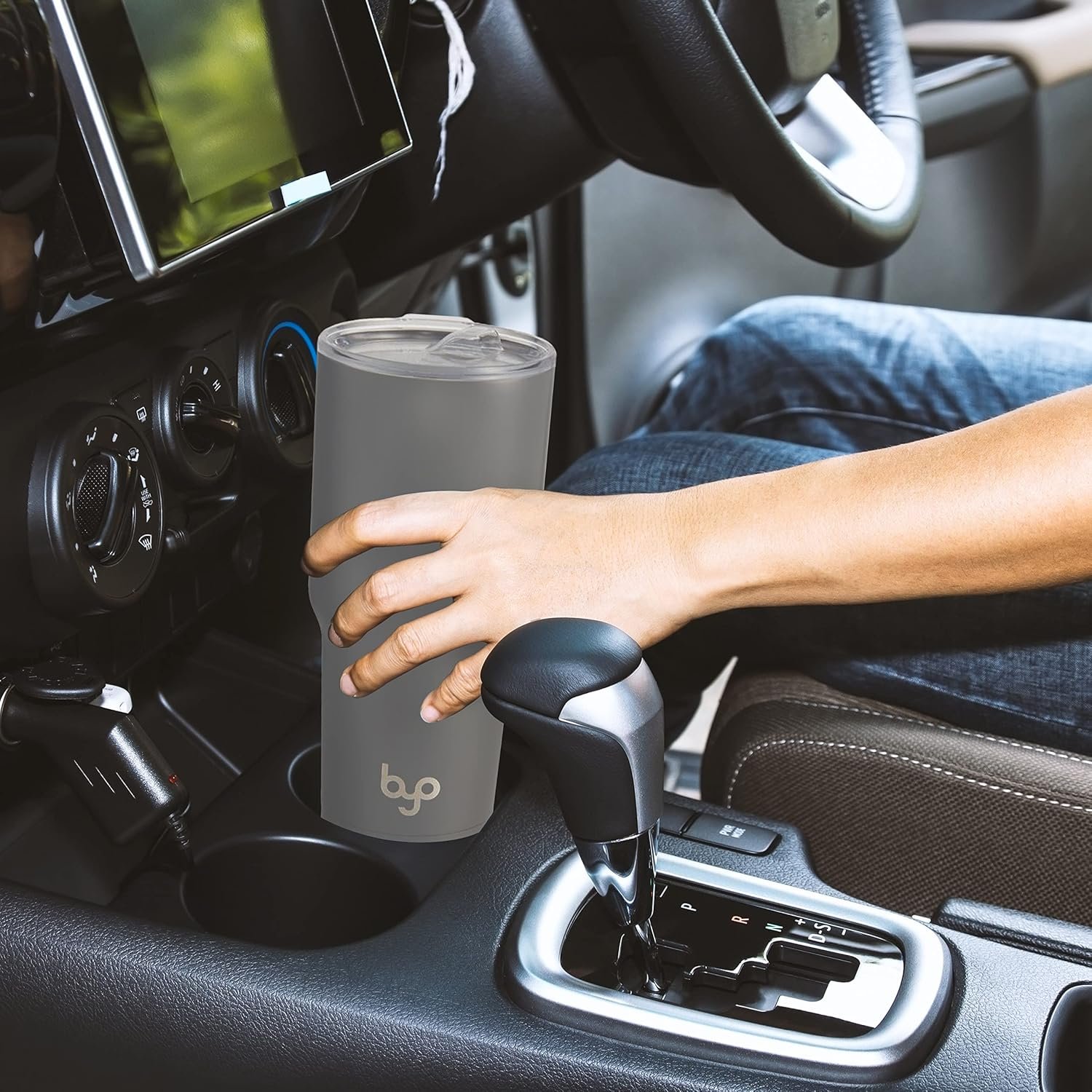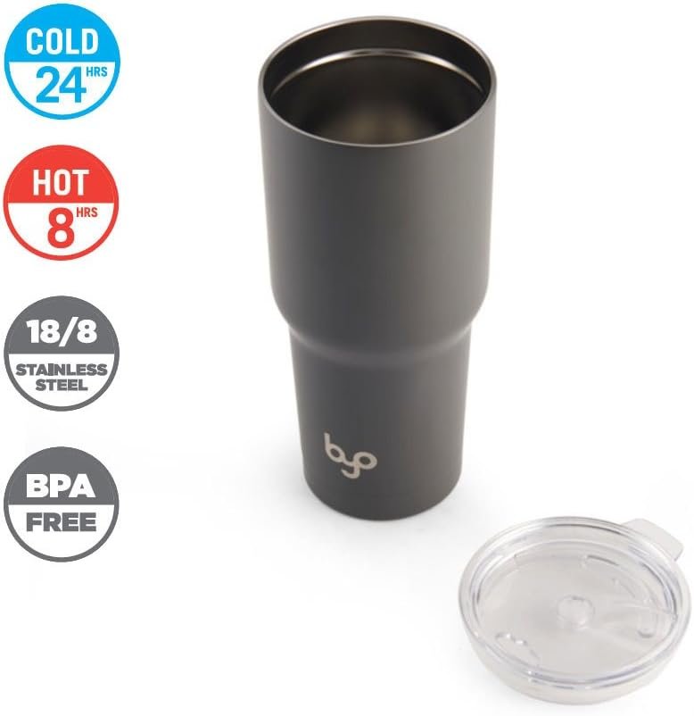 This BYO by BUILT double wall large tumbler is the perfect solution for bringing hot or cold drinks on-the-go. The tumbler is made of 18/8 stainless steel with a durable, threadless, Tritan lid that easily slides open and closed for one handed drinking. The double-wall design maintains the optimal temperature of beverages, keeping your drinks cold for 8 hours, hot for 4 hours. Sized to fit in most standard cup holders. Bpa-free and holds 30 ounces. Hand-wash with warm water and a mild detergent; rinse and dry immediately.