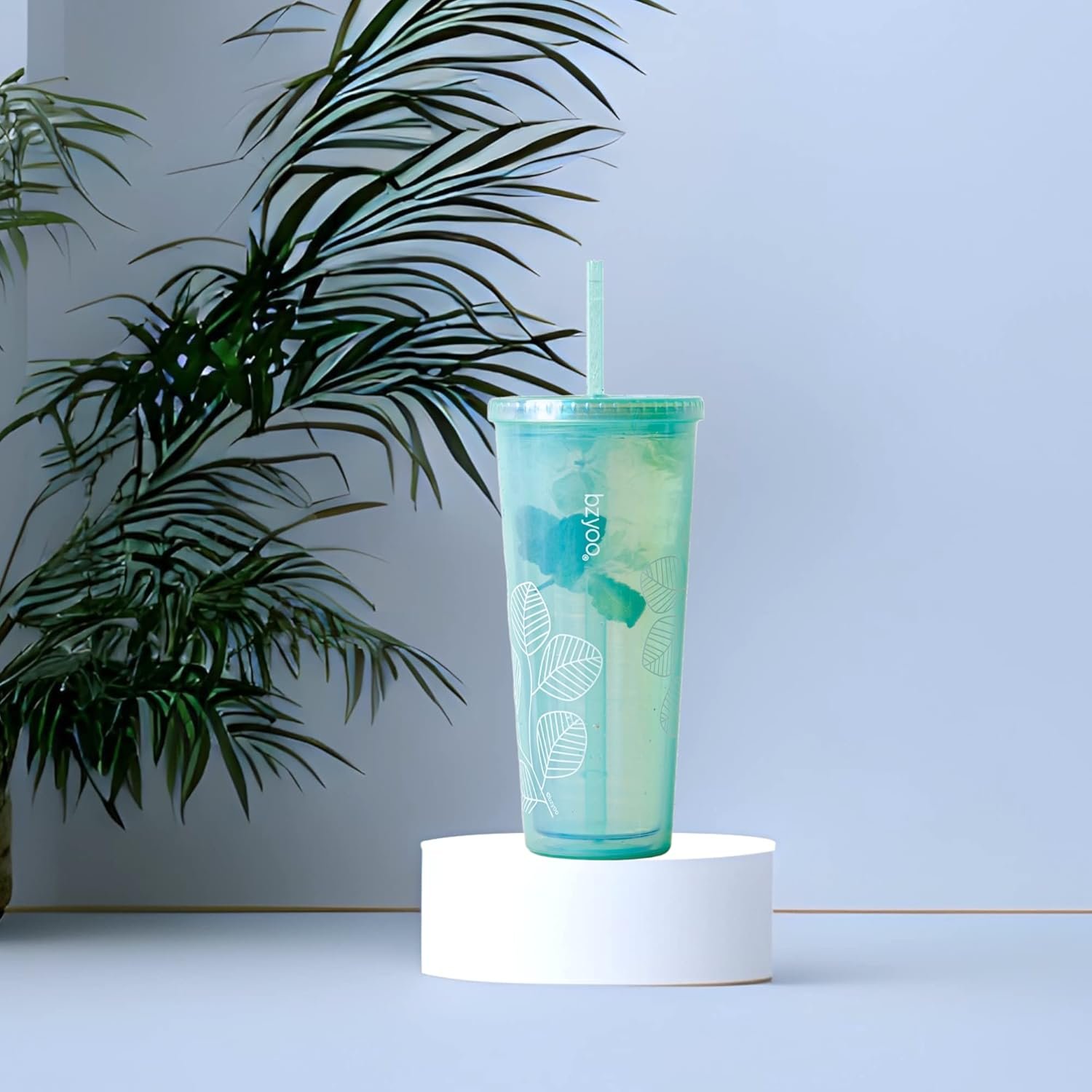 bzyoo SIP 24oz (710ml) Double Wall Plastic Tumbler with Lid and Straw Cold Drink Travel Mug Reusable Ice Coffee Tea Cup Perfect for Office Poolside Parties Gifts Color: Pearl Green