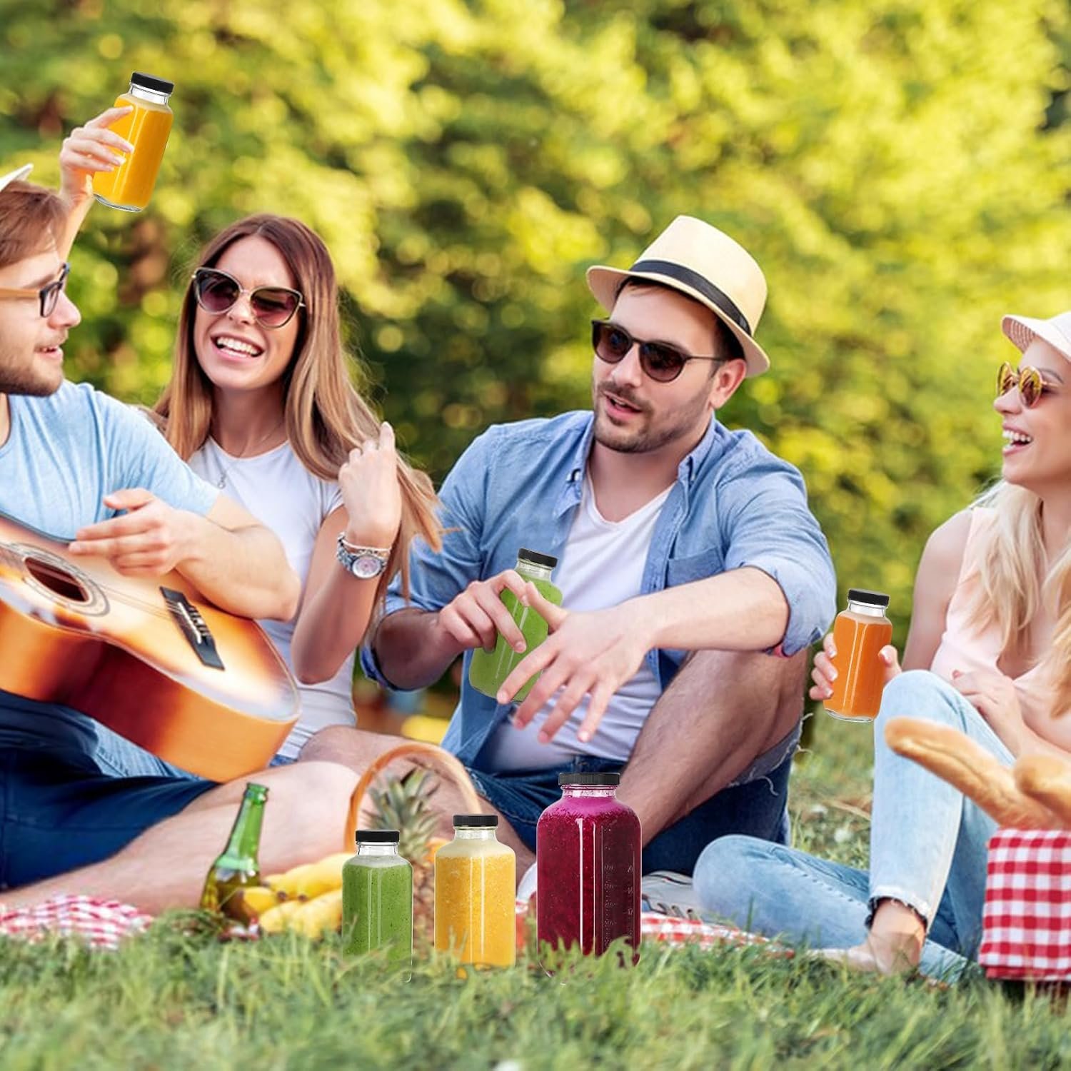CAKKVDE 8 oz Glass Juice Bottles with Lids 6 Pack,Reusable Glass Drink Bottles,250ml Water Drinking Jars for Milk,Juicing,Kombucha,Ginger,Beverage Glassware,Juice Drinking Jars