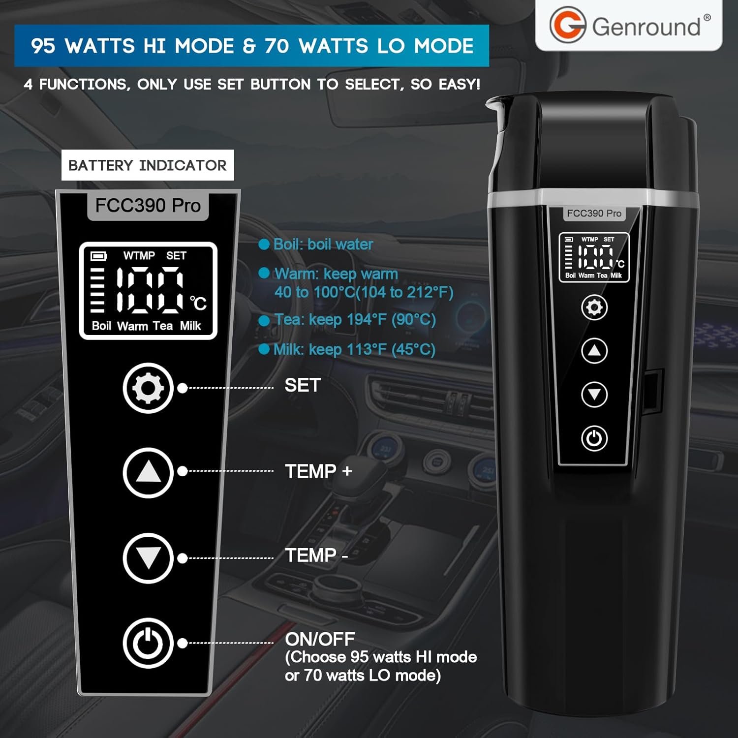 Different temperature ranges can be selected quickly and conveniently carried, perfect for travelling or business trips. You can enjoy hot water, tea and coffee in the car anytime, or prepare milk for your baby.