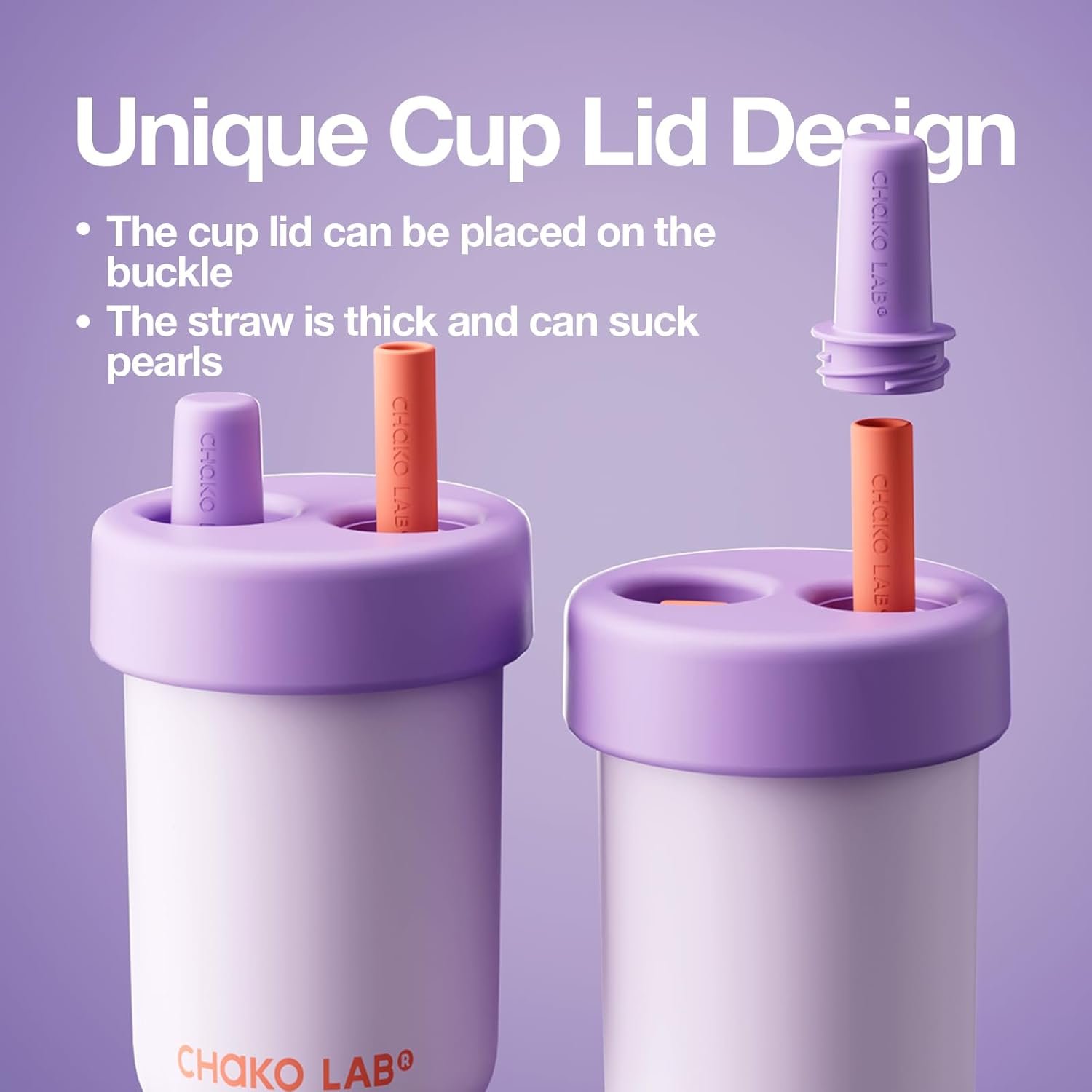 CHAKO LAB Kids Water Bottle with Carrying Rope and Straps | Vacuum Insulated Stainless Steel 16oz for School and Trvels | Two Travel Carrying Options | Taro purple