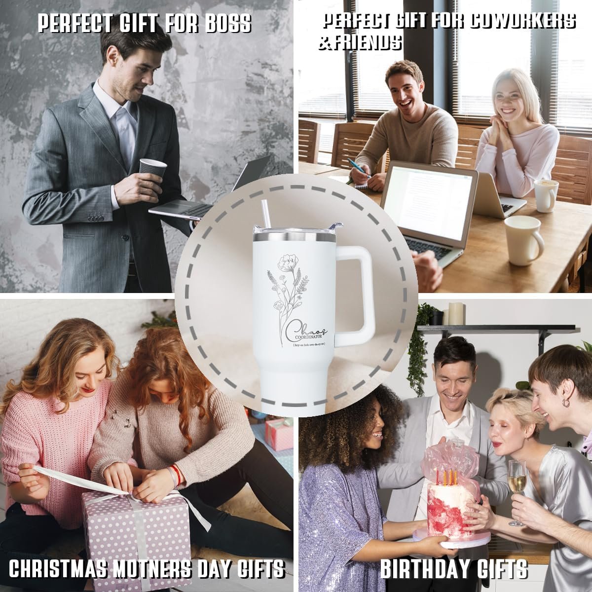 Chaos Coordinator Tumbler with Handle and Straw Chaos Boss Cup Coffee Travel Mug Thanks Gifts for Boss Women Coworker Manager Mom Dad Workers-40 oz Laser Engraved