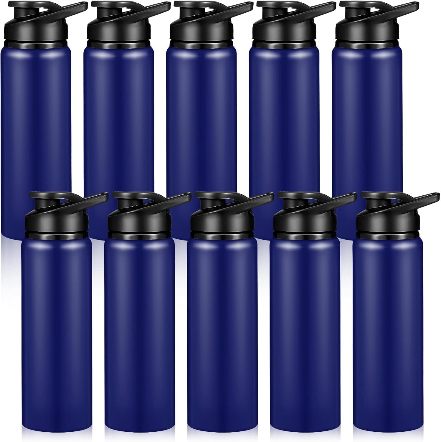CHENGU 10 Pcs Aluminum Water Bottle Bulk: 25oz Reusable Lightweight Outdoor Sports Water Bottles Easy Carry Leak Proof for Travel Gym Camping Hiking Fishing, Snap Lid (Blue)