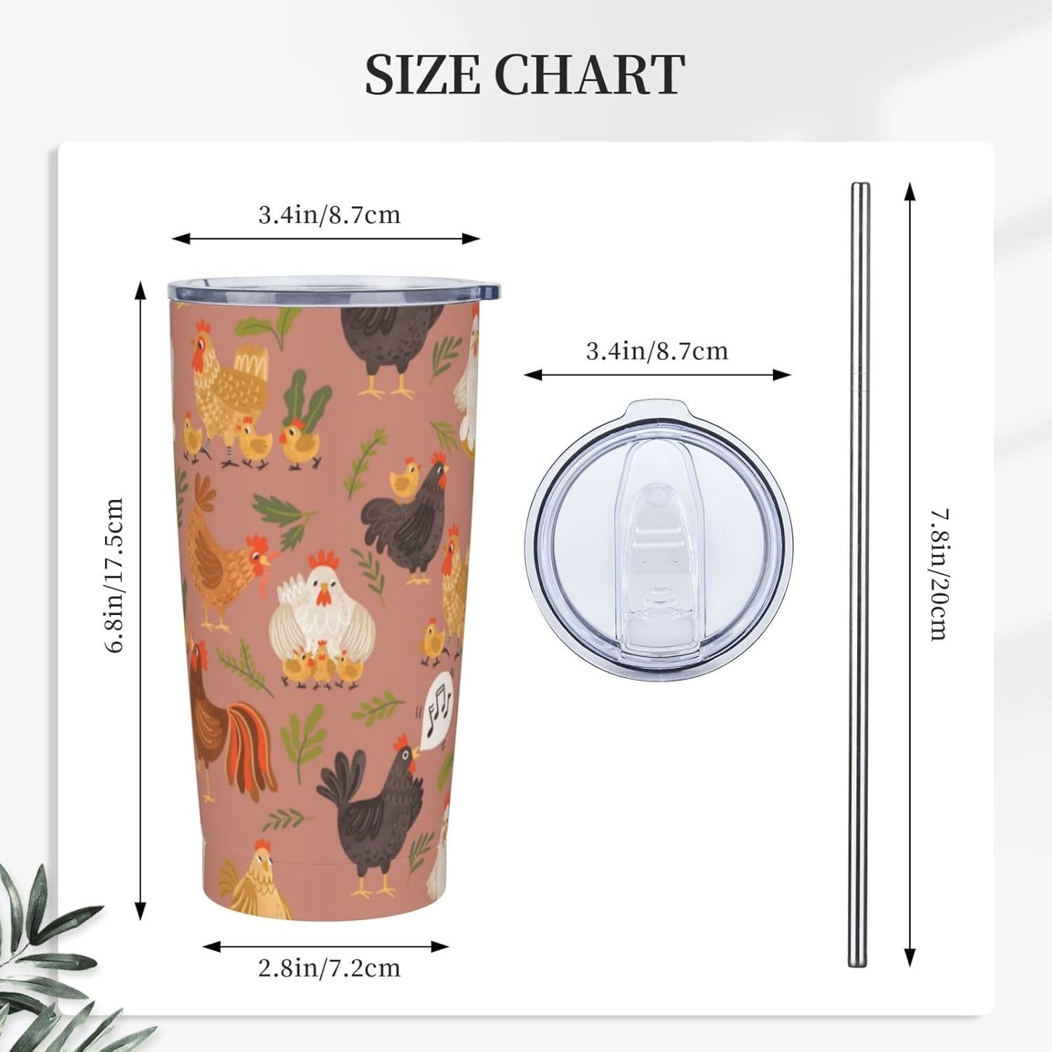 Chicken Tumbler Rooster Theme Stainless Steel Insulated Tumblers with Lid and Straw Reusable Cute Hen Coffee Travel Mug Tea Drinking Water Wine Cups Birthday Gifts for Women 20 Oz