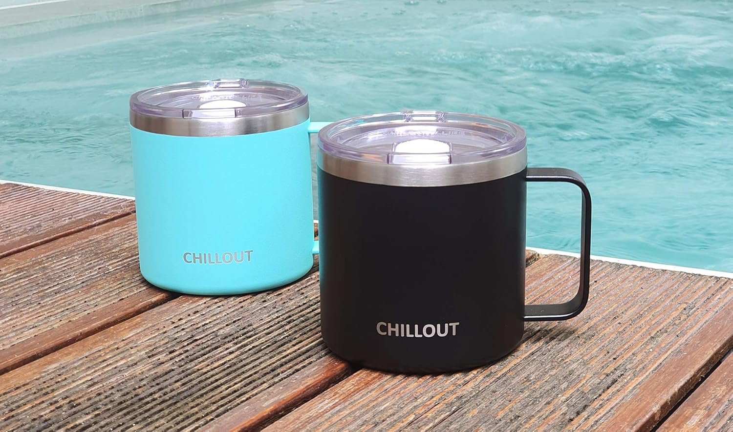 CHILLOUT LIFE brings you the answer in our highest quality & durable, double walled, fully insulated 16 oz. camping coffee mug with lid. Available to you in singles or pairs in a variety of color options. This cool looking large stainless coffee cup is the perfect way to keep you hydrated on the hottest or the coldest days and it’s the best coffee mug to keep coffee hot. Super comfy to drink from & stays hot or cold for hours.