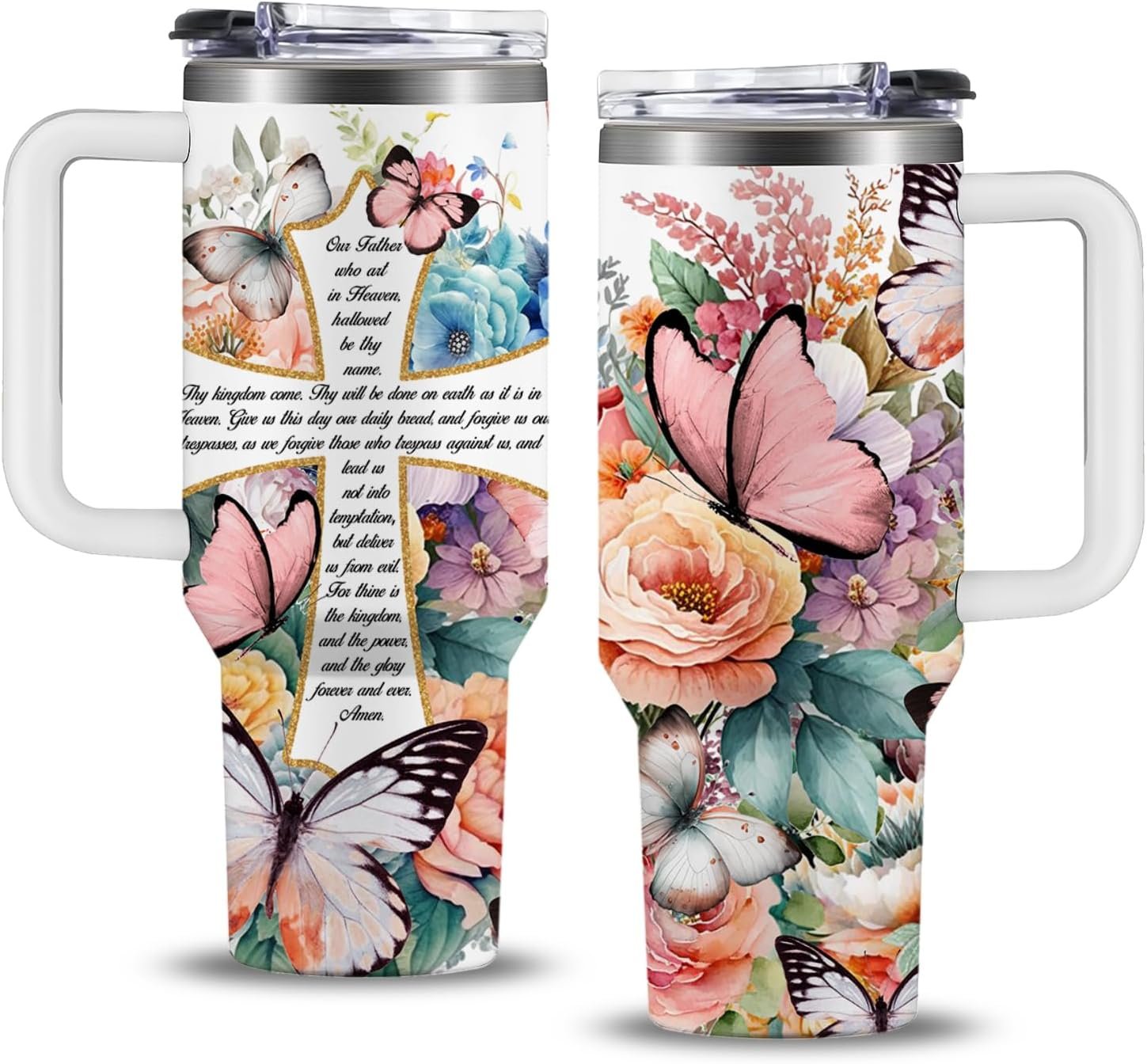 Meaningful Christian Gift: This cup features flowers and butterflies in the background and a cross with “The Lord’s Prayer” written on it, every sip of this special Christian gift is a meaningful and portable reminder of God’s love and grace, perfect for Christian gifts for women