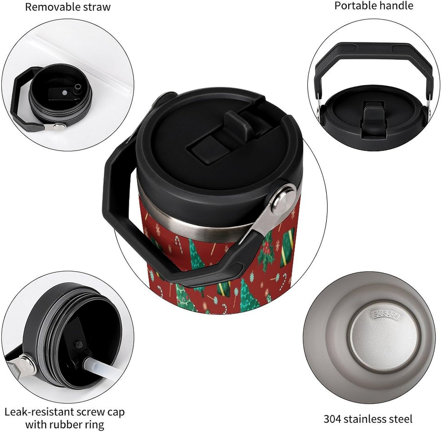 Functional Design: Double walled vacuum insulation technology and high grade 18/8 steel stainless allows Christmas trees thermal tumbler to keep beverages cold for up to 6 hours and hot for up to 8, long-lasting temp control ensure your drinks stay ice-cold and refreshing.