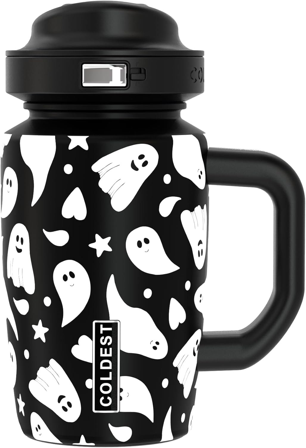 Coldest Tumbler with Handle & Coffee Lid – 100% Spill Proof Tumbler (3 Lids) – Stainless Steel Insulated Leakproof Tumblers for Women & Men – Cup Holder Friendly – 15 oz (Ghosts)