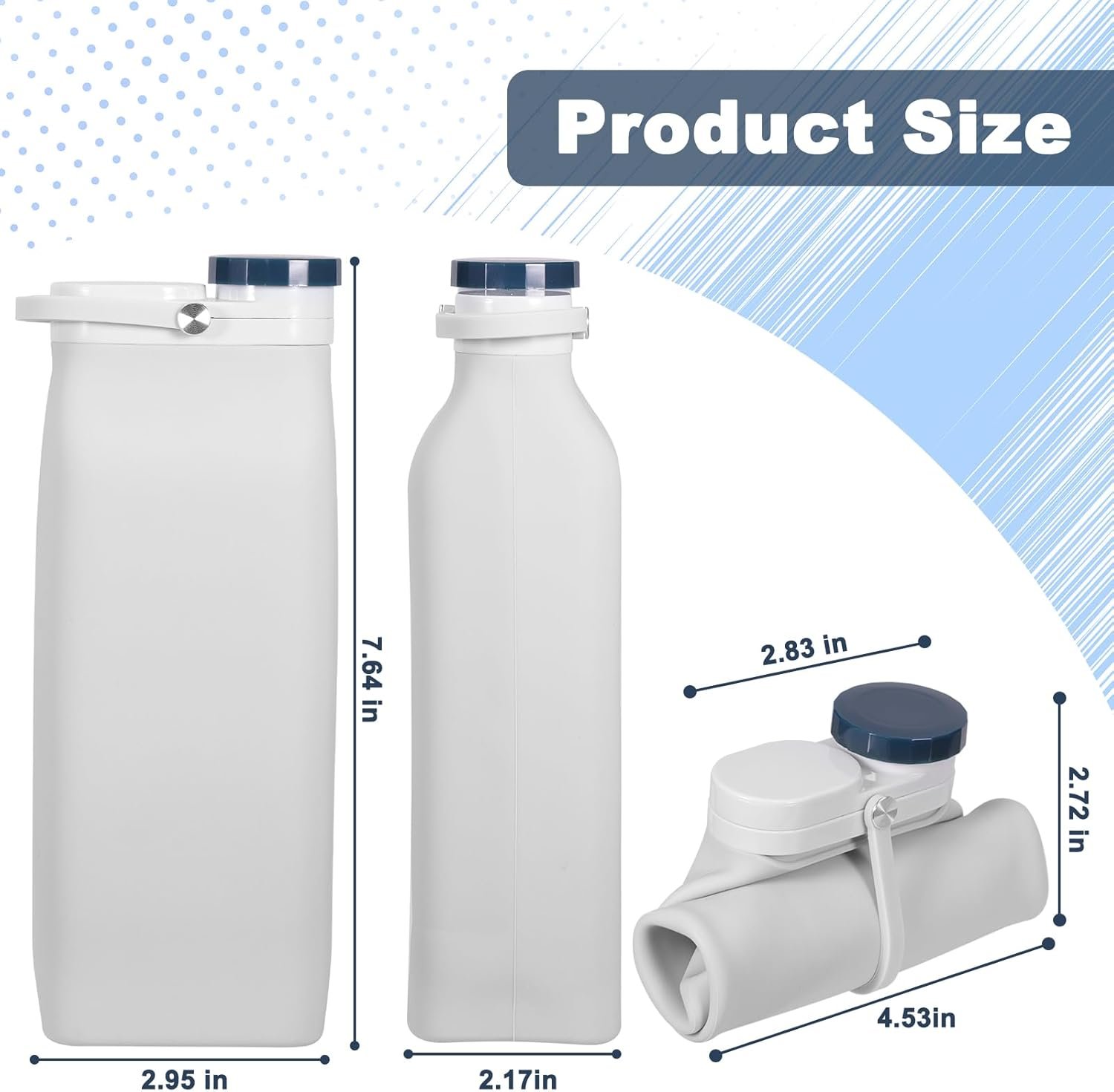 Portable design: Hidden carry handle design, easy to carry and ensure you stay hydrated during your journey or activity, can be reused for a long time. The foldable and reusable water bottle folds up to 4.53*2.72 inches, lightweight and compact, easy to store in backpacks and handbags, saving space.