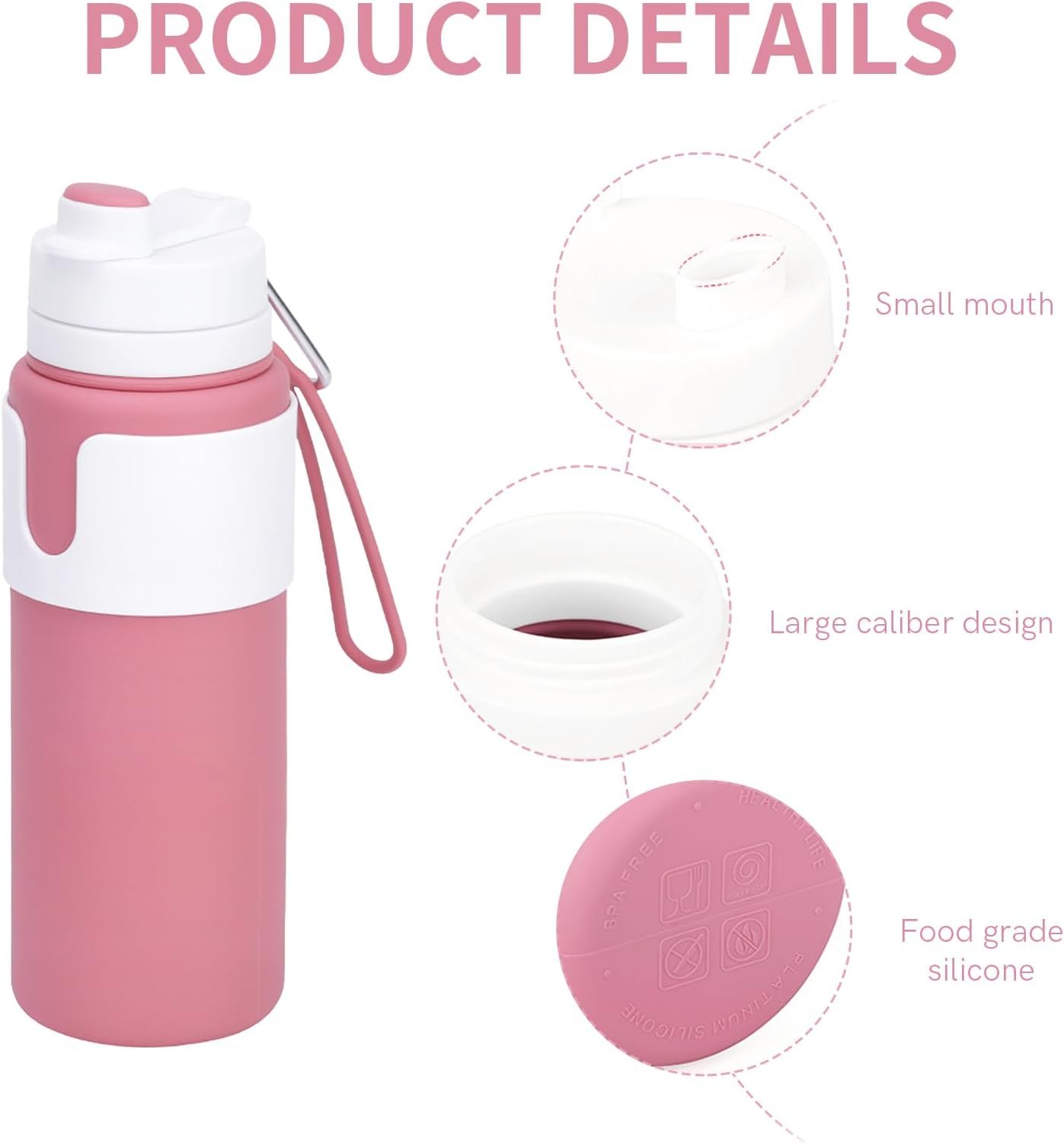 Collapsible Water Bottles for Travel – 26oz BPA-Free Foldable with Carabiner, Lightweight Leak-Proof Design, Portable Reusable Bottle for Hiking, Airplane, Camping (Pink)