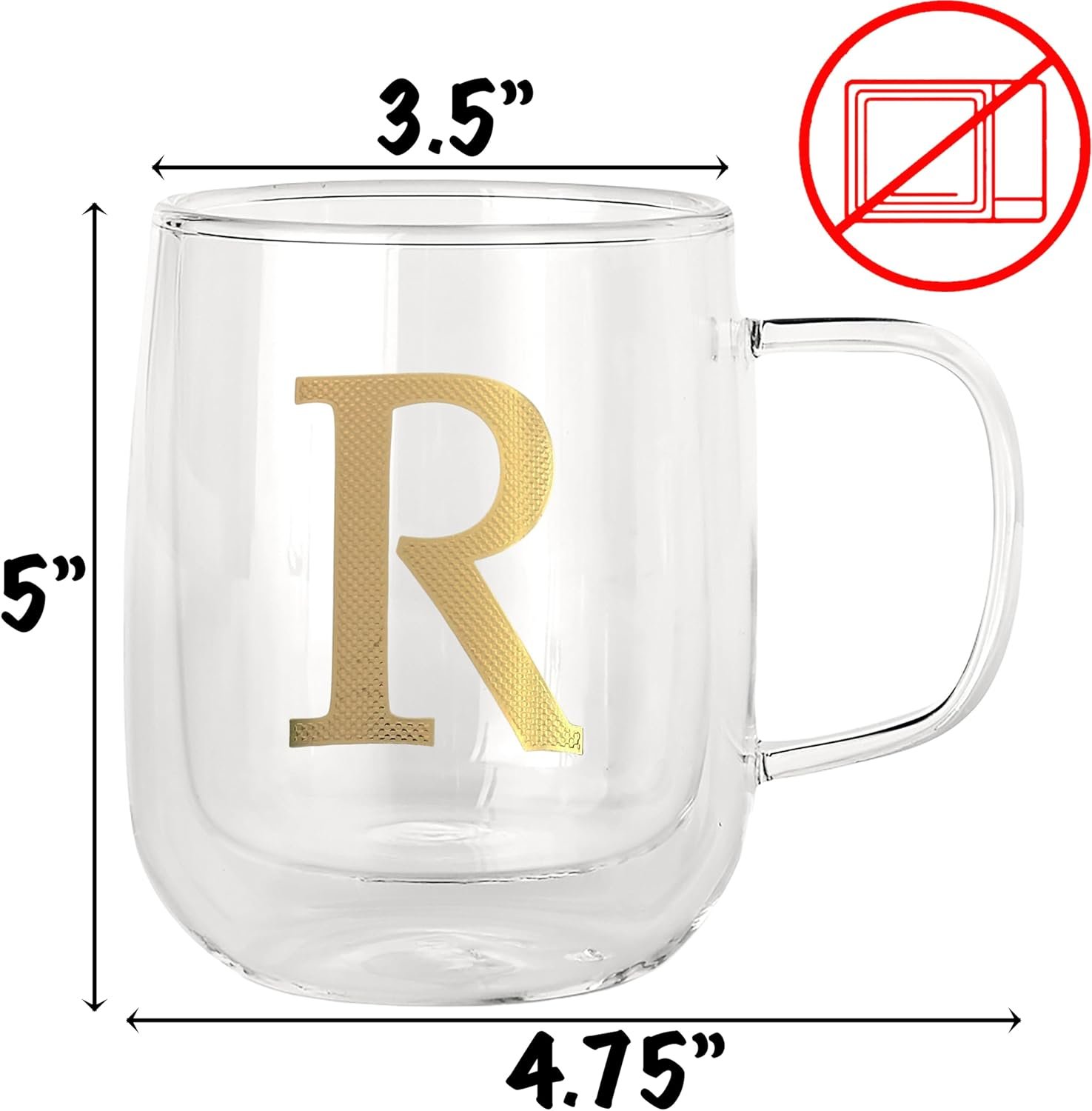 COLLECTIVE HOME – Double Walled Glass Coffee Mugs, Insulated Coffee Mug with Handle, Personalized Gifts for Women, Men, Christmas, 14 oz Monogram Cups (R)