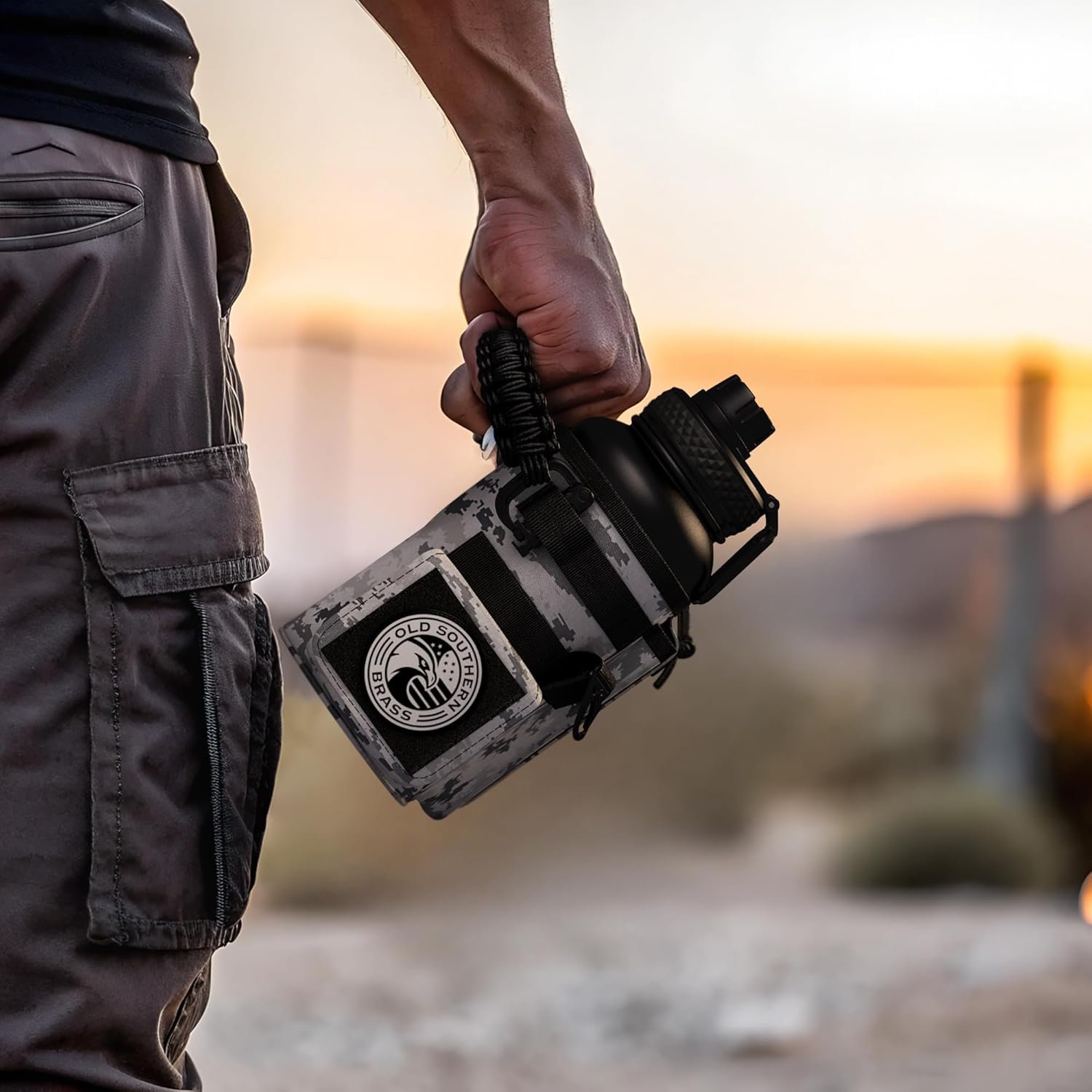 Combat Canteen – 32oz Insulated Water Bottle with Paracord Handle, Stainless Steel Water Jug with Rugged Pockets for Keys, Wallet & Phone – White Digital – Old Southern Brass