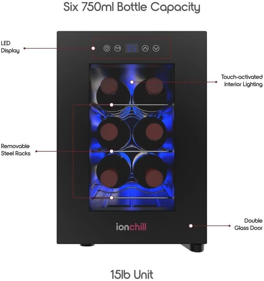 Compact 6-Bottle Wine Cooler with Smart Temperature Control and led Display