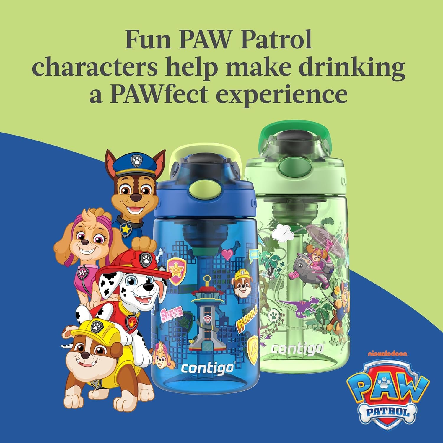 Contigo Aubrey Paw Patrol Leak-Proof Spill-Proof, 2-Pack Water Bottle with Autospout, 14oz, Power Pups and Dino Treks, Green and Blue