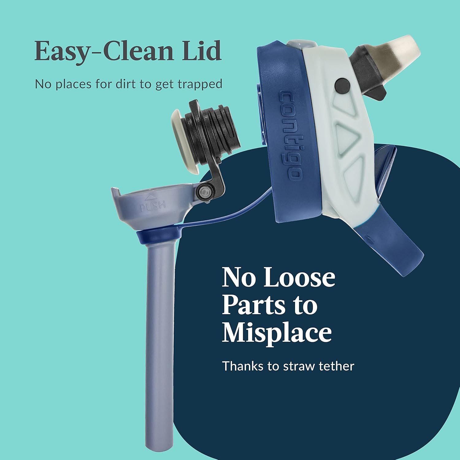 Innovative AUTOSPOUT design: Sturdy silicone straw that flips up easily and folds back when not in use