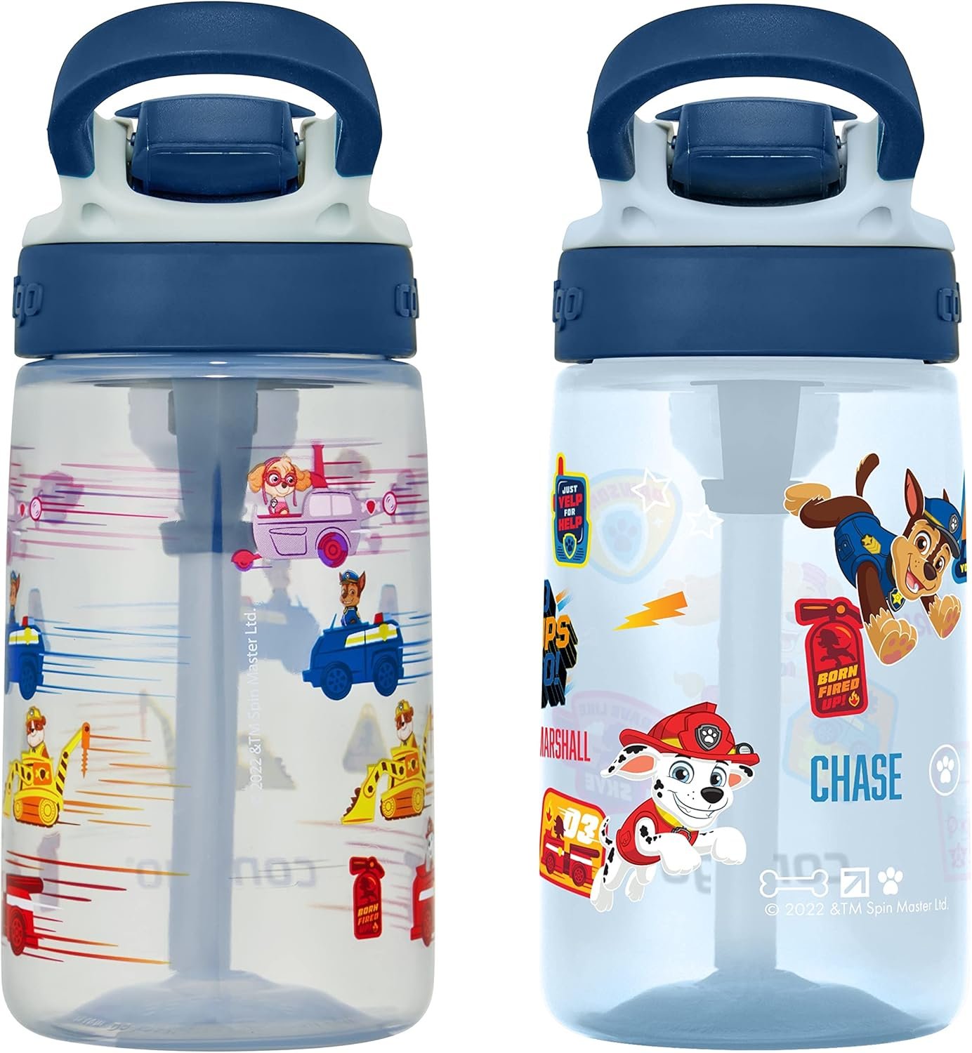 Contigo Paw Patrol Kids 14oz Plastic Water Bottles Aubrey Design with Spill-Proof Lid Silicone Straw 2-Pack Convenient for Travel/Home/School Use Dishwasher Safe