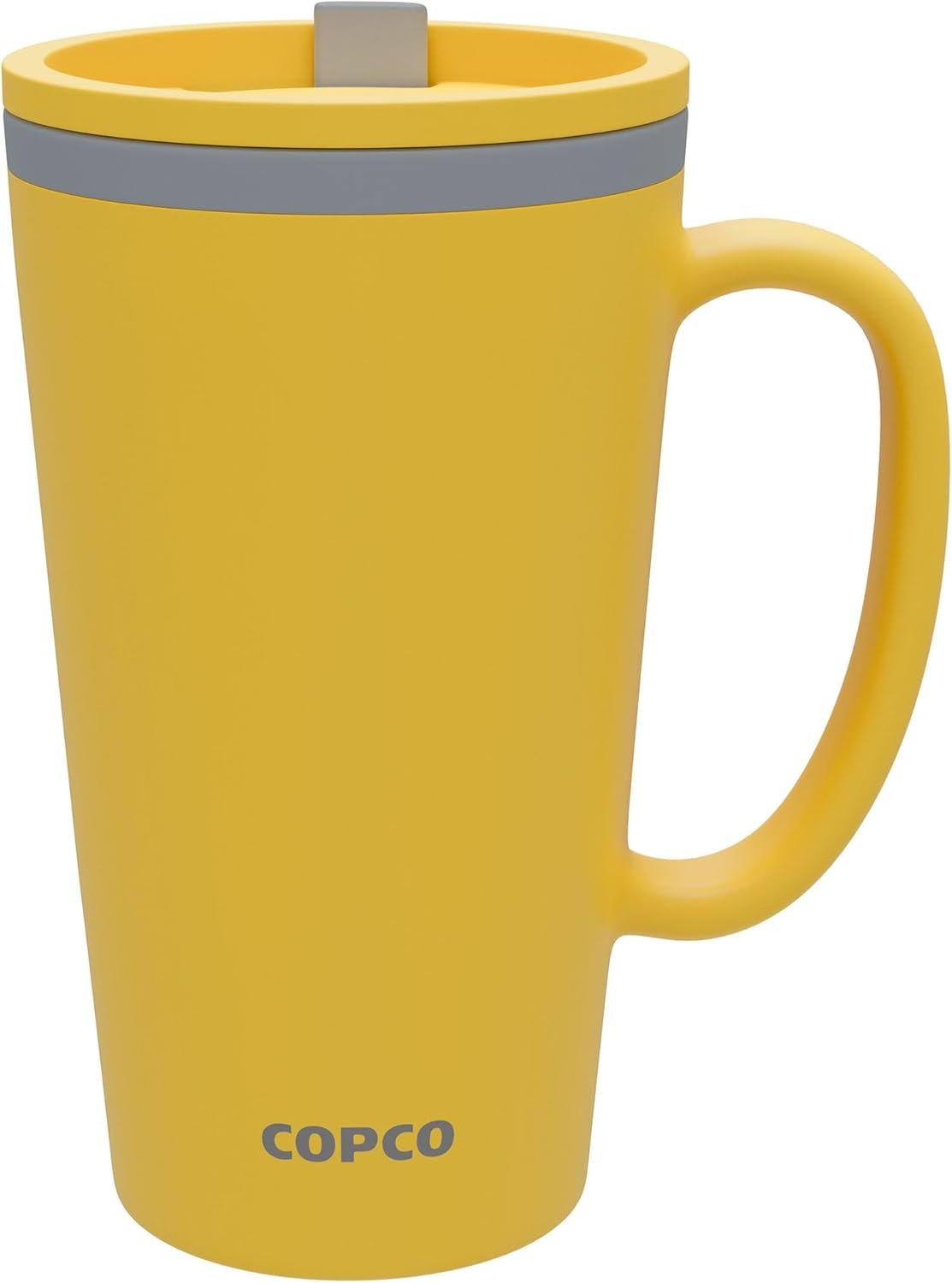 Copco Cone 16oz Insulated Travel Mug with Handle, Double Wall, Slide-Closure Lid, BPA-Free, Microwave & Dishwasher Safe, Reusable Plastic Travel Coffee Tumbler – Portable Coffee Cup (Mustard)