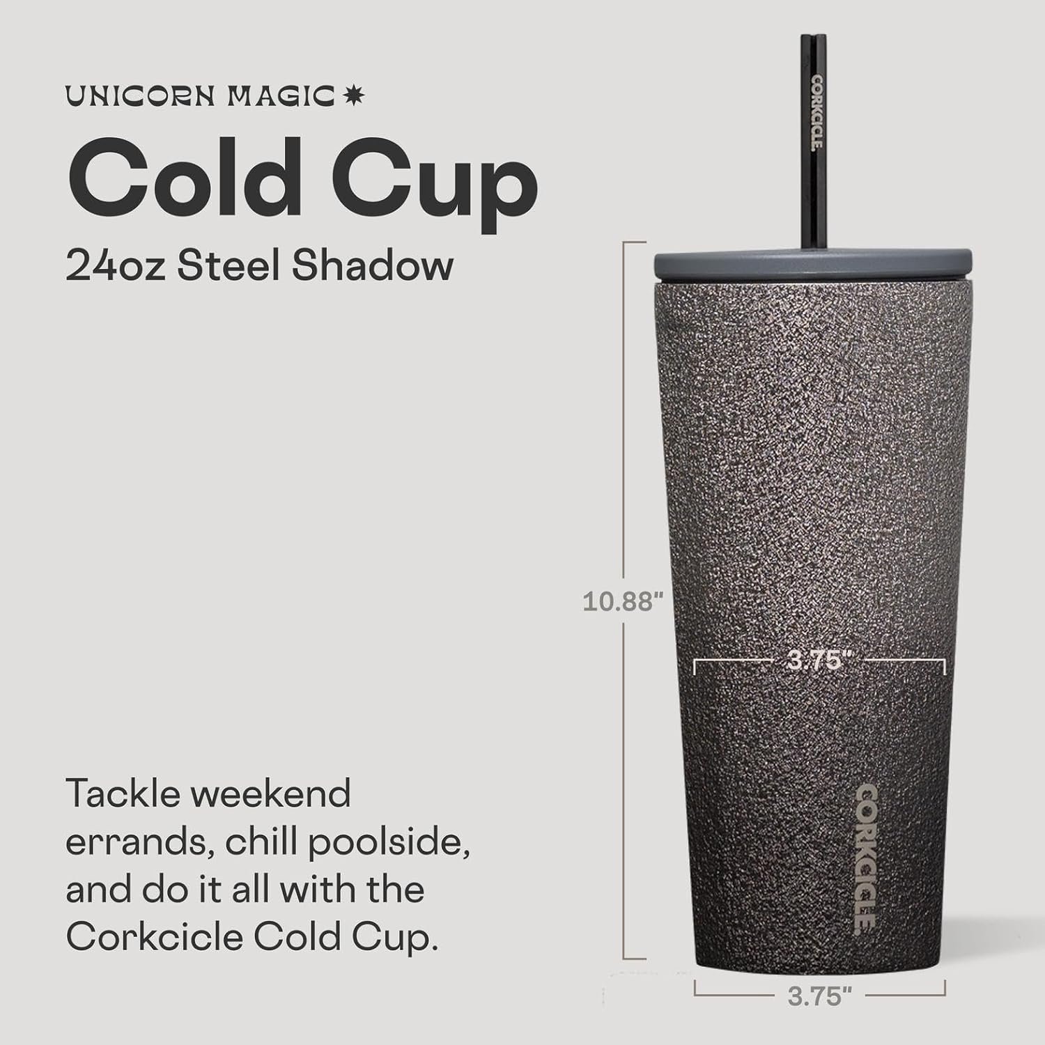 Corkcicle Cold Cup Insulated Tumbler with Straw – Keeps Drinks Cold for 12 Hours – Triple-Insulated Stainless Steel – Leak-Resistant Lid – Summer Drinkware Gift – 24 oz – Steel Shadow