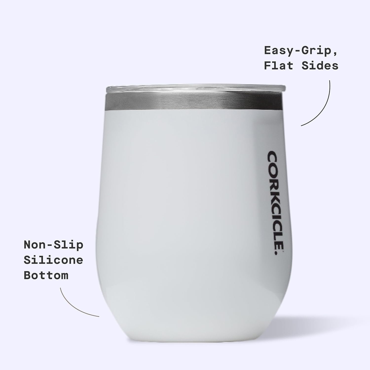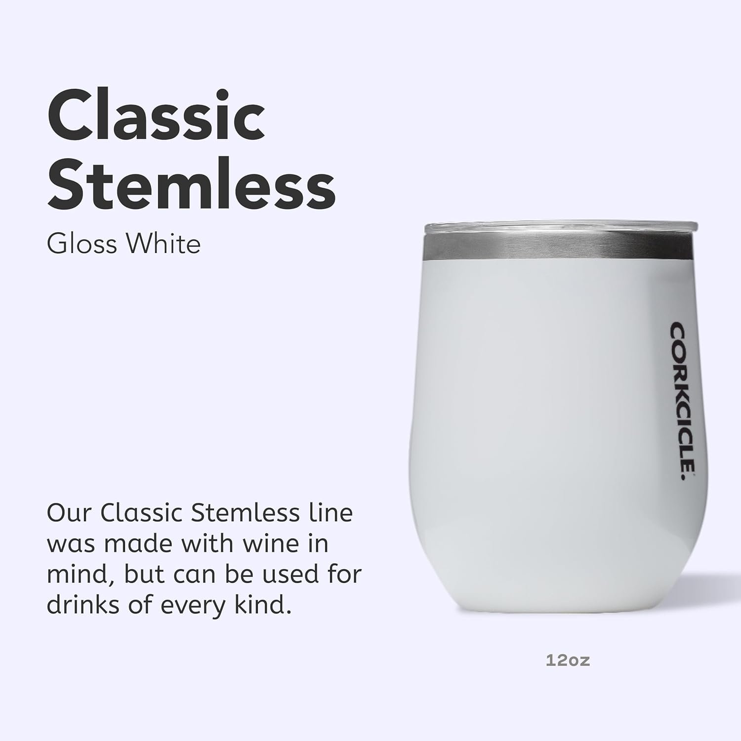 Corkcicle Stemless Wine Tumbler – Keeps Drinks Cold for 6 Hours – Triple-Insulated Stainless Steel – Non-Slip Base – Summer Drinkware Gift – Keeps Drinks Ice Cold – 12 oz – Gloss White