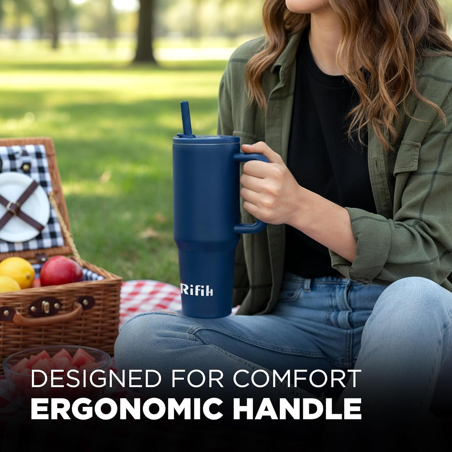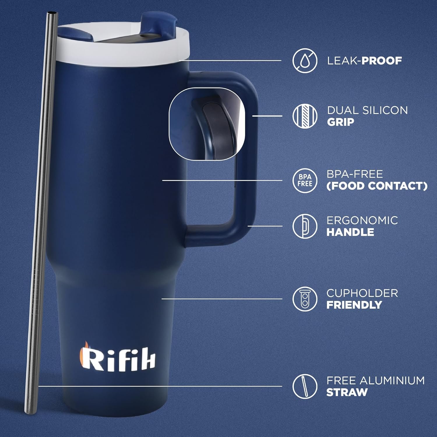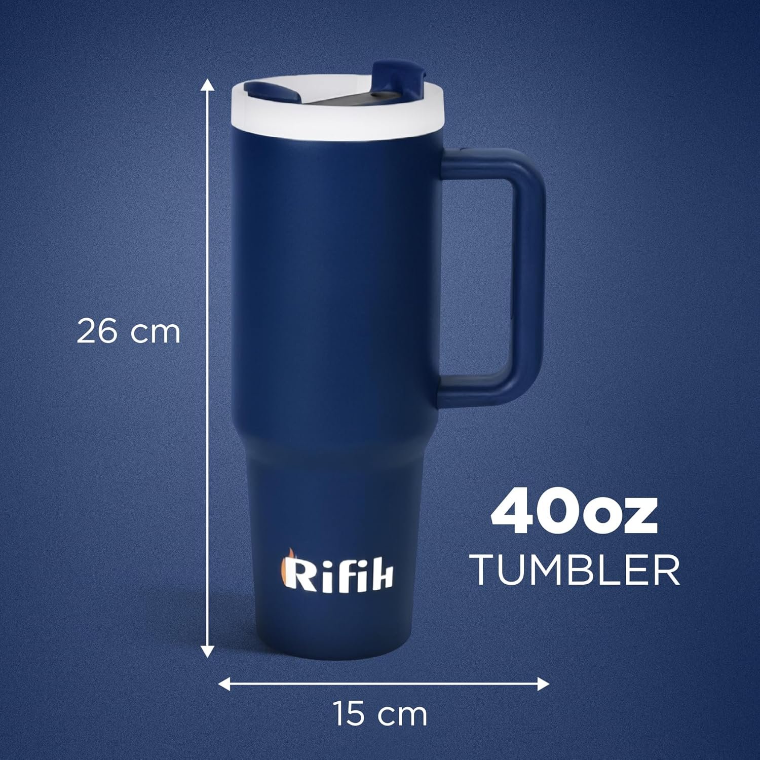 Cup with Lid and Straw, Tumbler with Handle, Travel Mugs, Stainless Steel Cup, Insulated Water Bottle, Insulated Travel Coffee Mugs, Cup with Straw, Coffee Mugs with Lids (NAVY BLUE, 40 OZ)
