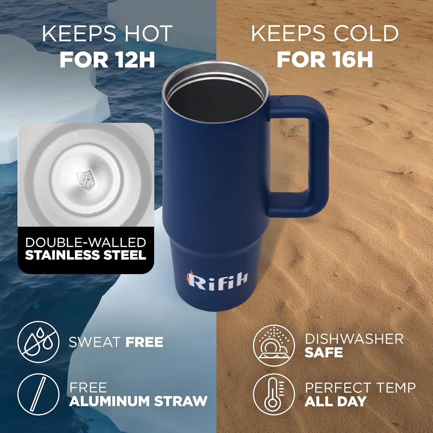 🔥 HOT OR COLD ALL DAY : Enjoy your favorite beverages at the perfect temperature, anytime, anywhere. With advanced double-wall vacuum insulation, this tumbler keeps drinks ice-cold for up to 24 hours and piping hot for up to 12 hours. Whether you’re on a road trip, at the office, or exploring outdoors, your drink stays just the way you like it. Say goodbye to lukewarm coffee and watered-down iced drinks—experience freshness and satisfaction from the first sip to the last.
