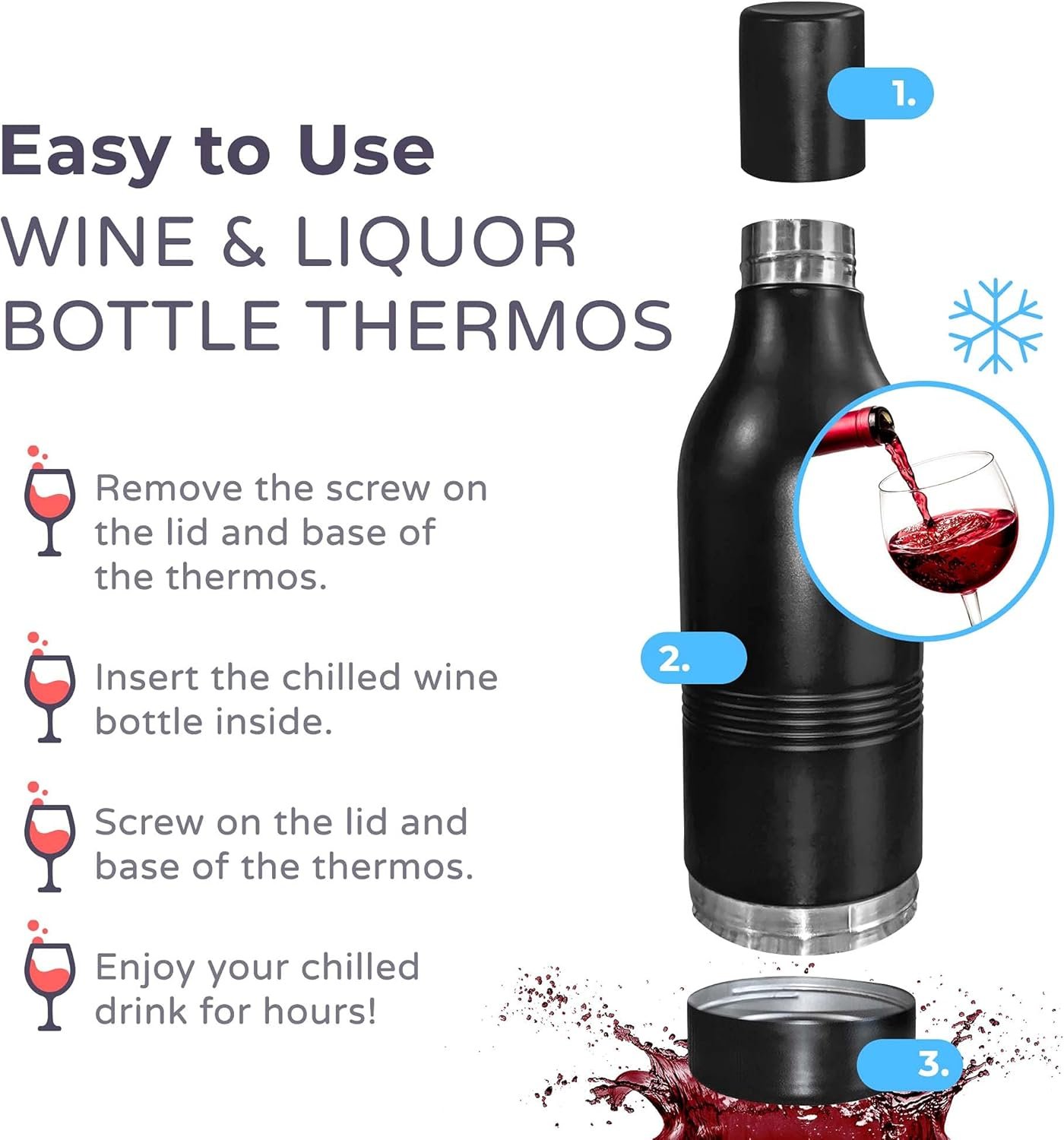 𝐏𝐄𝐑𝐅𝐄𝐂𝐓 𝐆𝐈𝐅𝐓 𝐅𝐎𝐑 𝐖𝐈𝐍𝐄 𝐋𝐎𝐕𝐄𝐑𝐒: This stylish insulated wine tumbler is available in four exquisite colors: black, blue, pink, and silver. The wine bottle cooler is an ideal gift for birthdays, holidays, or any special occasion, adding a touch of elegance to wine enjoyment.