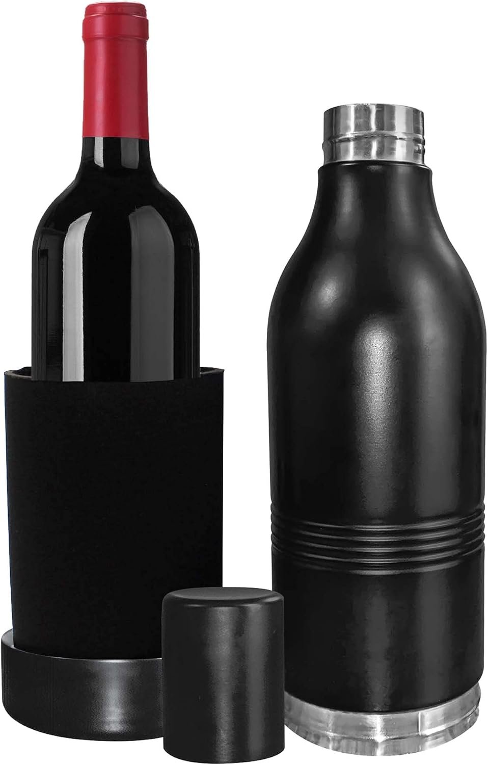 CUULii Insulated Wine Tumbler – Double-Wall Stainless Steel Portable Cooler for Red and White Wine, Travel with Neoprene Liner, BPA-Free – Perfect Gift for Wine Lovers, Black (750ml)