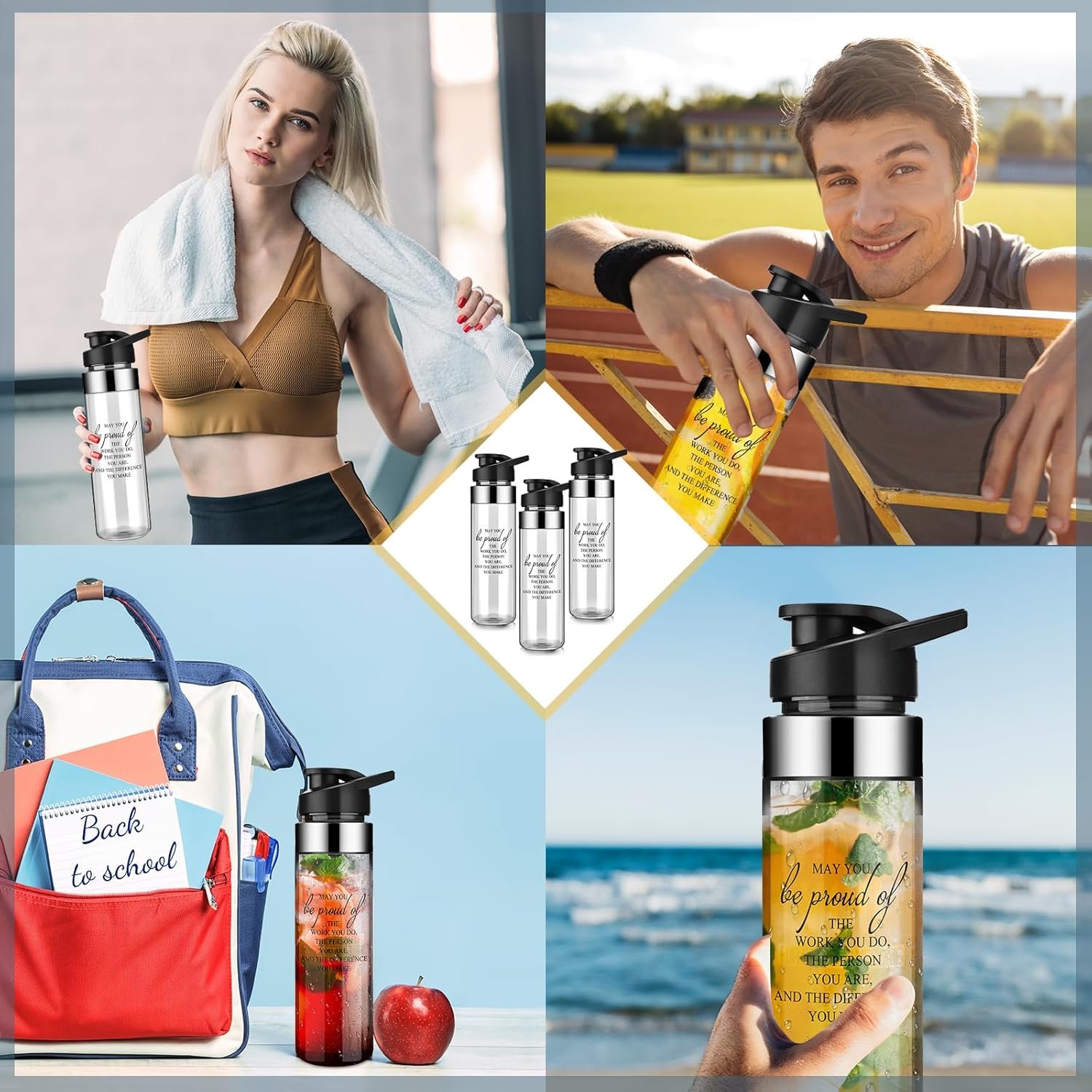 Sufficient Quantity: the package will provide you with 6 pieces of team water bottles, each has a capacity of 21 oz/ 600 ml, is about 2.68 inches/ 6.8 cm in diameter, 9.65 inches/ 24.5 cm in height; They are rich in quantity and composed of quality material, can well meet your daily use, replacement and sharing needs, also suitable for travelling and other outdoor activities when you are with your friends