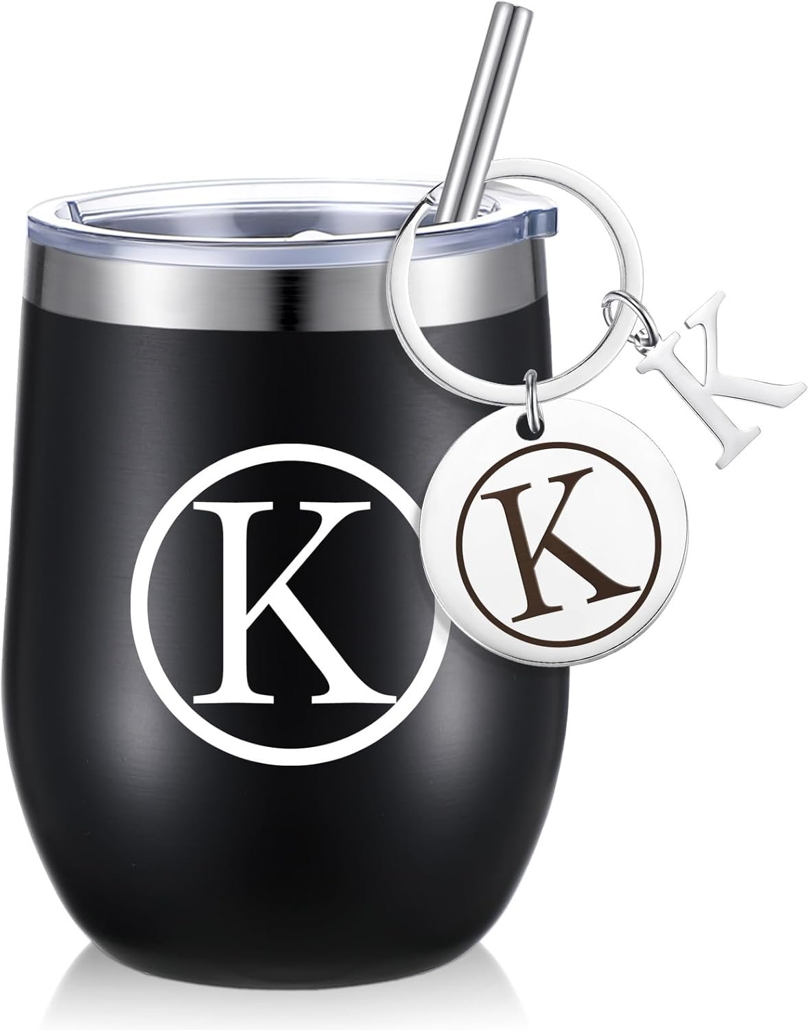 Dandat Personalized Wine Tumbler with Personalized Keychain 12 oz Double Wall Vacuum Stainless Steel Travel Mug with Lid and Straw Birthday Christmas Gifts for Friends Family Coworker (K Style)