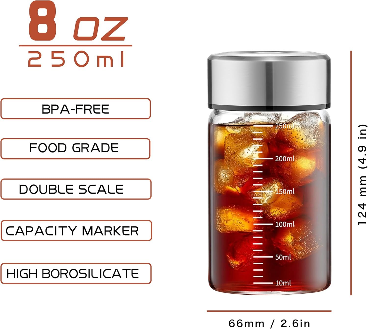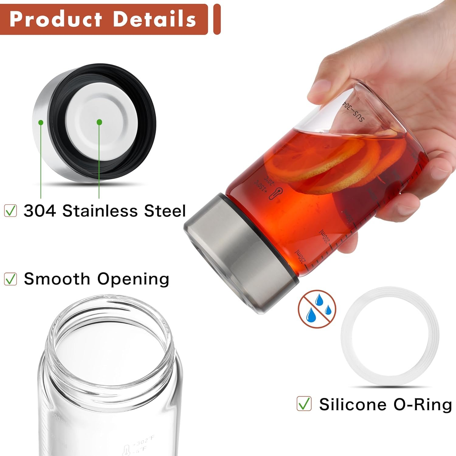 Heavy-duty Reusable Glass Bottles – These glass bottles for juicing are thick and crystal clear;Their large openings make it easy to clean and use;You can add ice cubes or fill these glass drinking bottles with lids with juices, smoothies, kombucha and more with no need of funnel