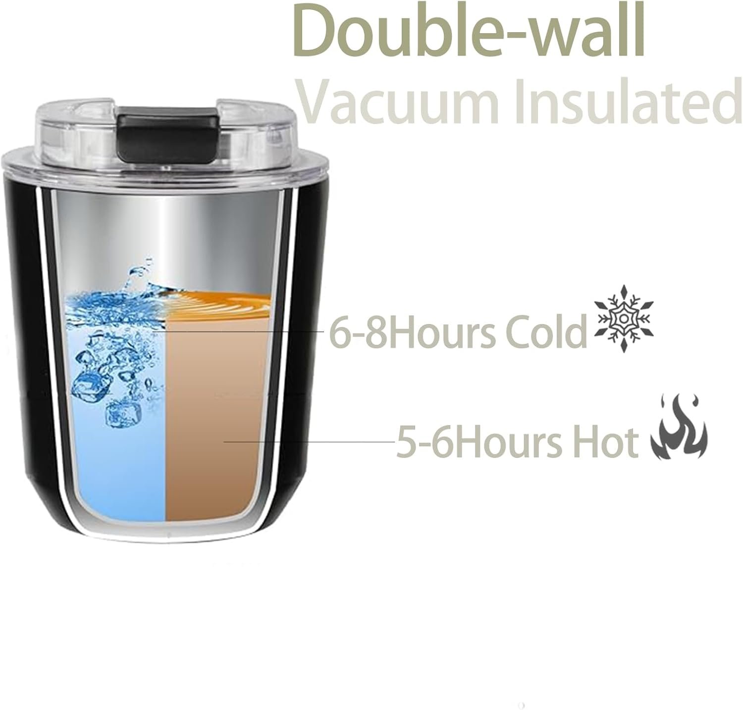 DEQIANG Travel Coffee Cup, Coffee Cup Travel with Lid, Insulated Coffee Mug for Hot & Cold Beverages, Great Gift Choice for Coffee Lovers, Office Workers, Hikers & Commuters (Black, 8.5 oz)