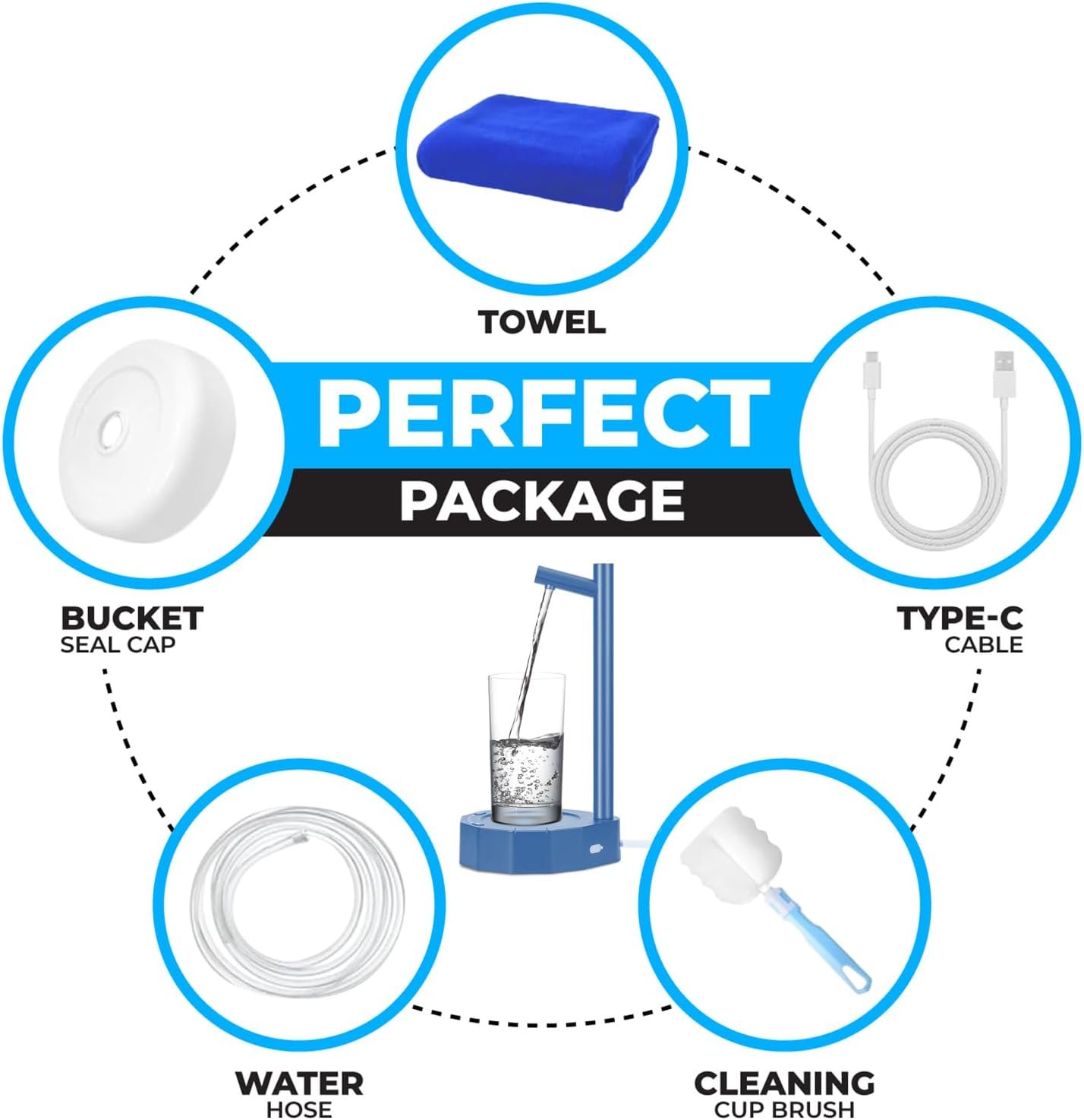 【Safe & Hygienic Materials】This electric water dispenser is made of sturdy ABS plastic with a food-grade silicone hose.These materials are safe and sanitary, and can be used for drinking water.
