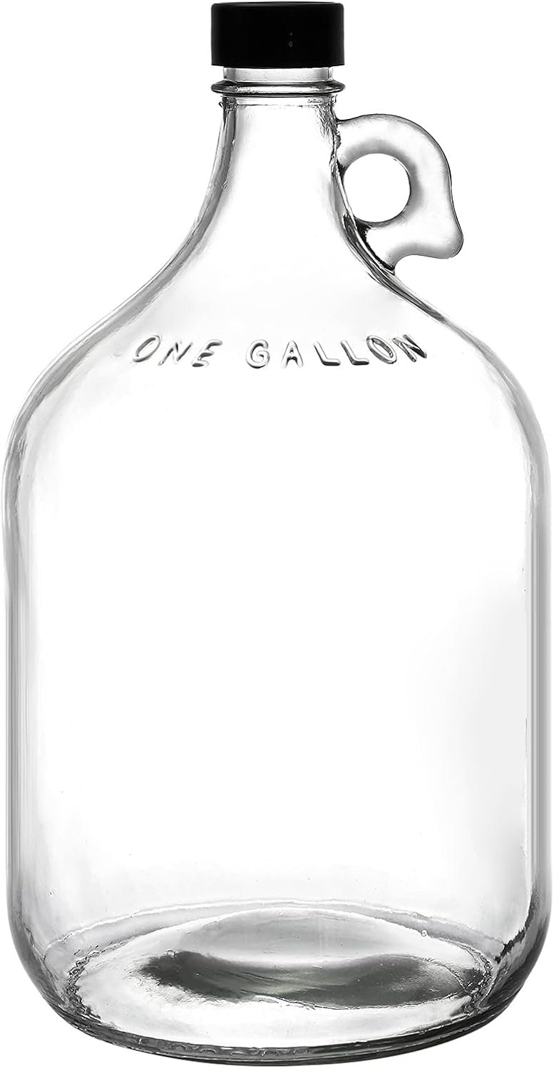 Dicunoy 1 Gallon Glass Jugs, 128 OZ Large Fermenting Jug with Seal Lid, Wine Growler Carboy Bottle with Handle for Juice, Milk, Water, Vinegar, Limoncello, Home Decoration, Change Jar