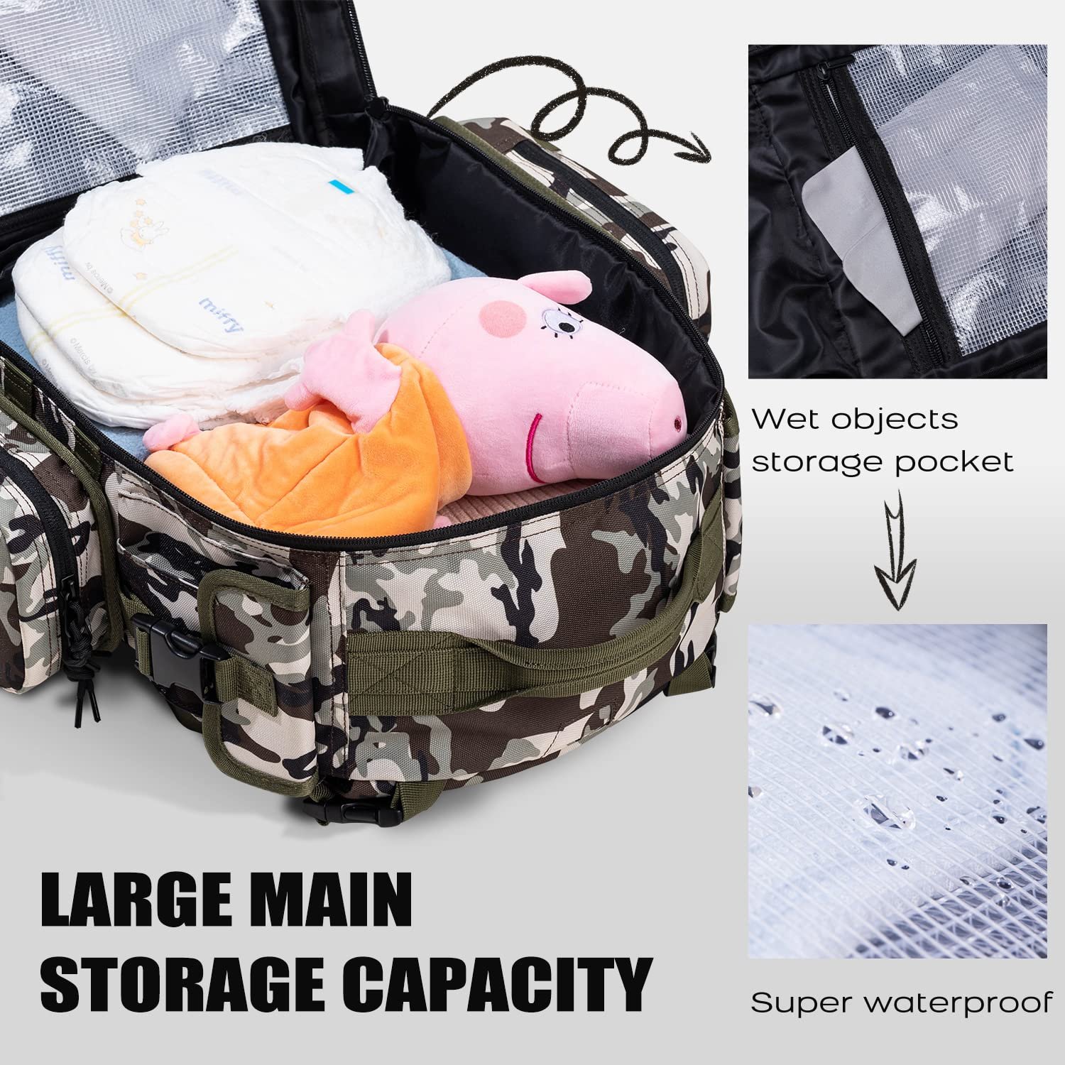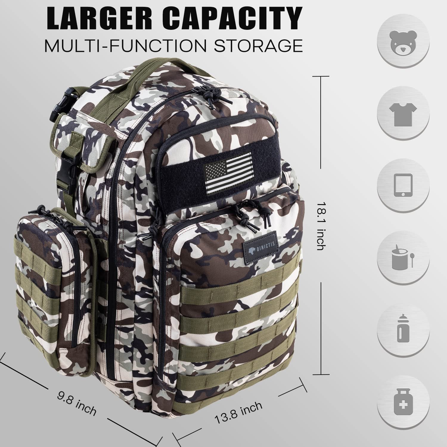 Dinictis Dad Diaper Bag, Mens Diaper Bag Backpack with Diaper Changing Mat, Military Diaper Backpack with Molle Webbing, Waterproof Pouch, Baby Wipes pocket, Insulated Bottle Pockets- Camo