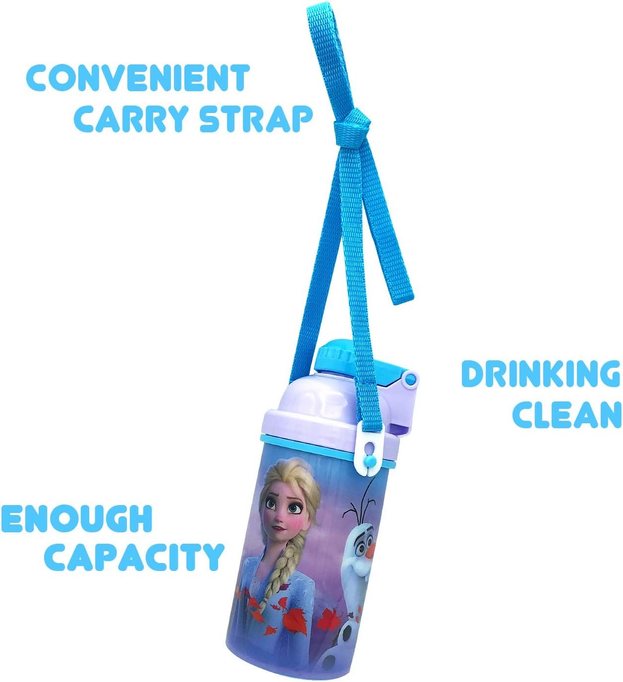Disney Frozen Carrying Strap One Touch Water Bottles with Reusable Built in Straw – Safe Approved BPA free, Easy to Clean, Perfect Gifts for Kids Girls Boys, Goodies Home by Zak design