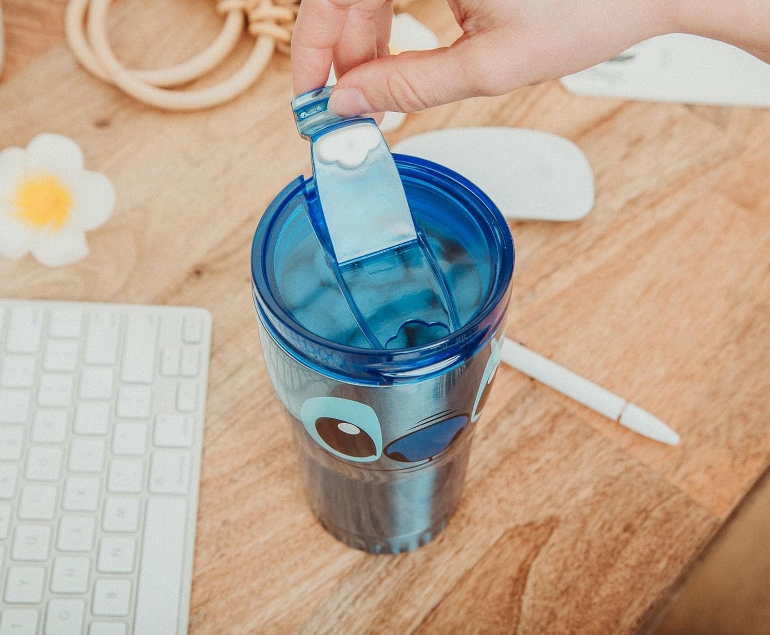 DRINKWARE THAT’S OUT OF THIS WORLD Join your favorite extraterrestrial from Disney’s Lilo & Stitch on a galactic adventure. Experiment 626 takes on a new disguise as this exclusive stainless steel tumbler. Always ready for mischief, the little troublemaker appears on this blue travel tumbler with his familiar grinning visage. Wherever you’re headed, count on Stitch to bring a piece of the cosmos to your Earthly surroundings. REFRESHMENTS FROM YOUR HOME PLANET Designed with BPA-free stainless steel and double-walled insulation that keeps your liquids cool, even during the hottest moments in paradise. This travel tumbler is an eco-friendly option compared to your typical disposable plastic cup, so you can travel around the universe in style while reducing waste. Comes topped with a closing Tritan lid to keep all your interplanetary liquids safely contained. Make every day exciting with this officially licensed drinkware from Disney’s Lilo and Stitch.