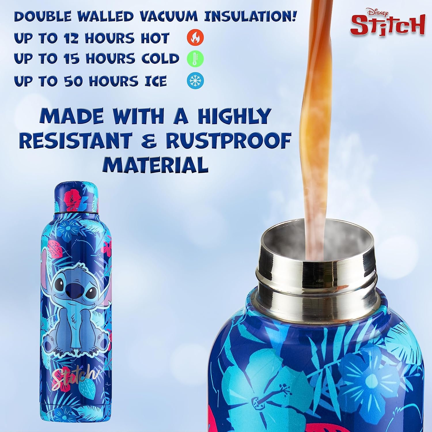 Disney Stitch Insulated Water Bottle – 515ml Stainless Steel Metal Drinks Bottle Teenagers Hot or Cold – School Sports Travel – Stitch Gifts