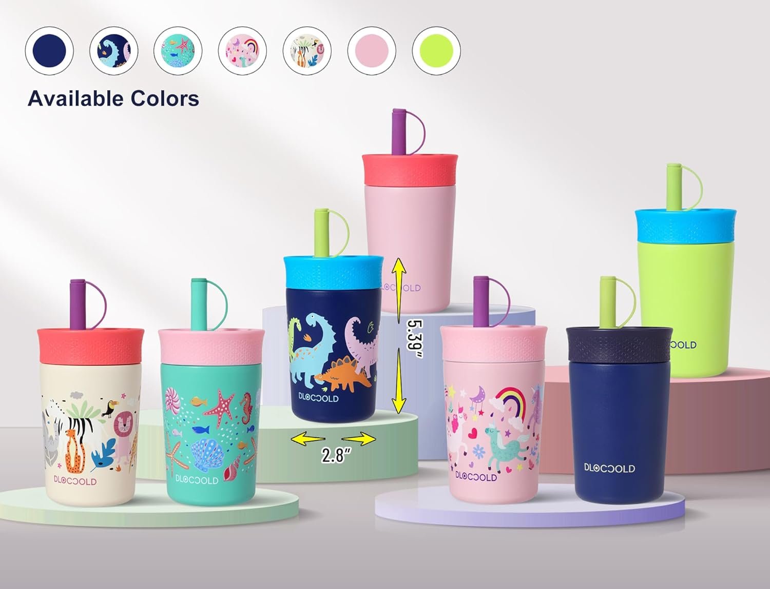 DLOCCOLD 12 oz Insulated Stainless Steel Straw Tumbler, Reusable Sippy Cup With Leak-Proof Spill Resistant Flexible Straw Lid, Cups, Easy to Clean, Water Bottle, Great for Travel, Home