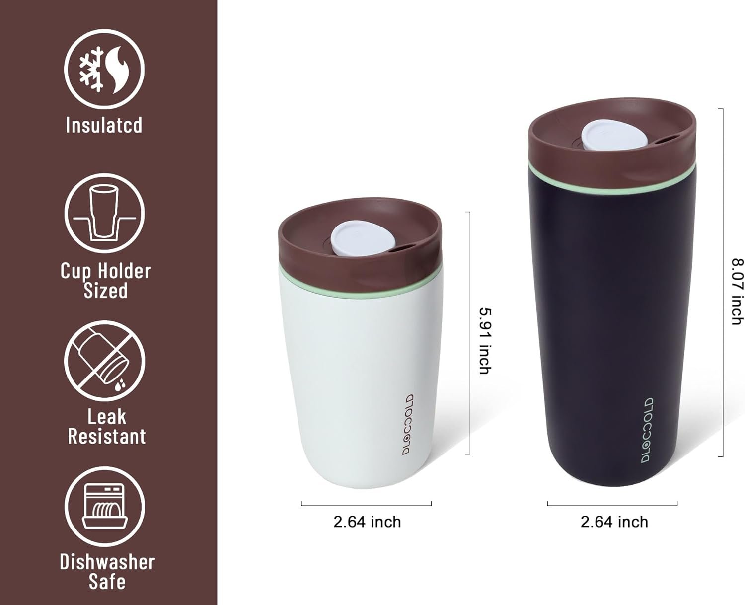 DLOCCOLD Insulated Stainless Steel Coffee Tumbler with Spill Resistant Lid, Reusable Iced Coffee Cup, Cup Holder Friendly Travel Coffee Mug, 20oz