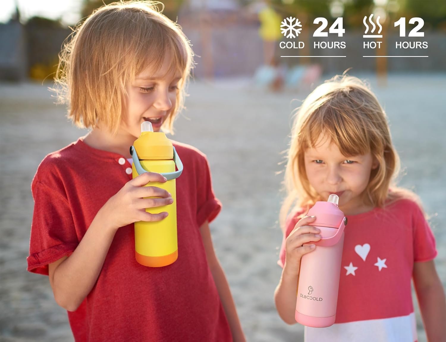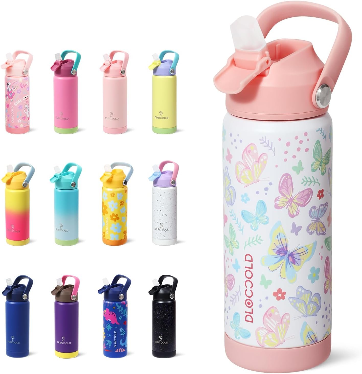 DLOCCOLD Kids Insulated Water Bottle with Leak Proof Straw Lid, Double Wall Vacuum Stainless Steel Water Bottle with Silicone Boot, Reusable Tumbler for Travel, Boys, Girls