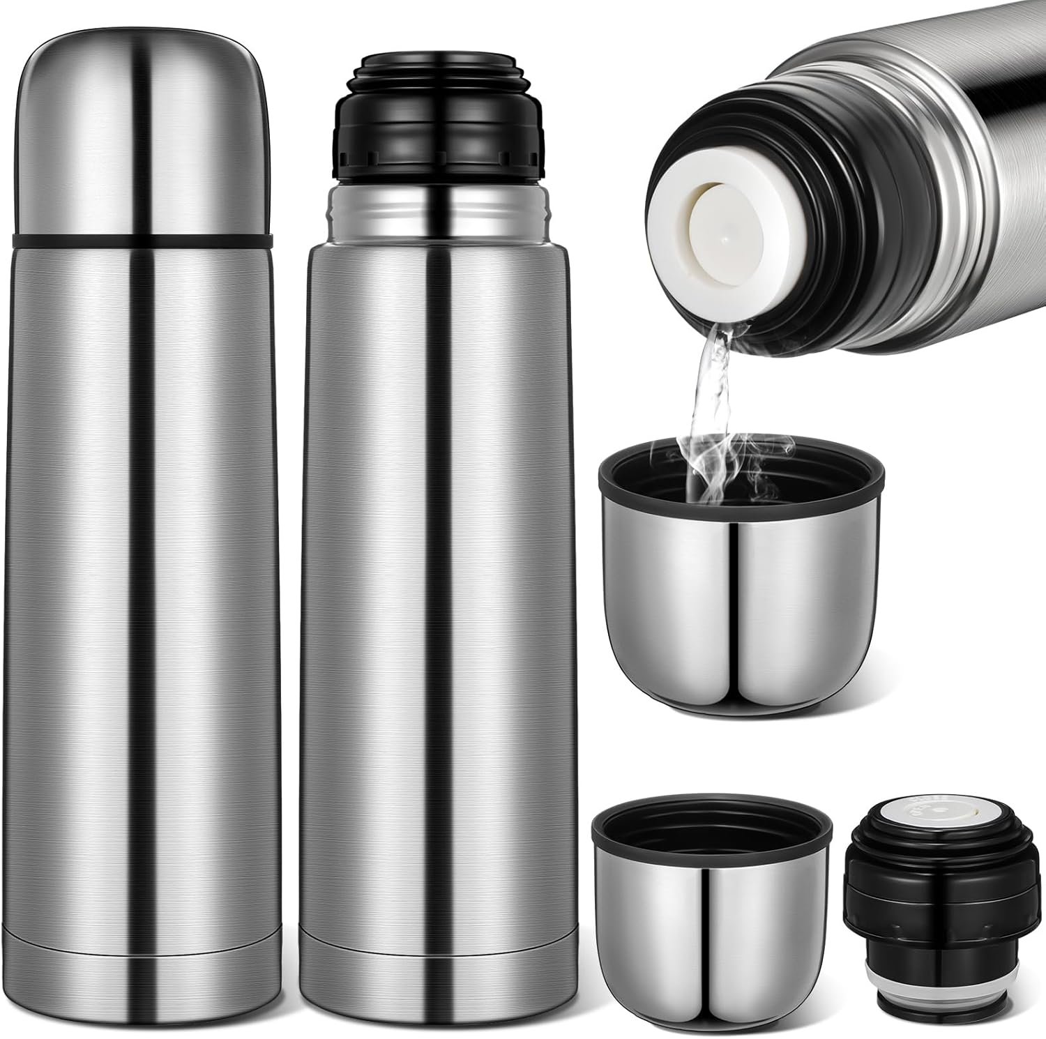 Domensi 2 Pcs Stainless Steel Thermal Bottle 17 oz/ 500 ml Hot Water Flask Coffee Travel Mugs with Cup Cafe Sealed Vacuum Insulated Bottles for Hot Drinks