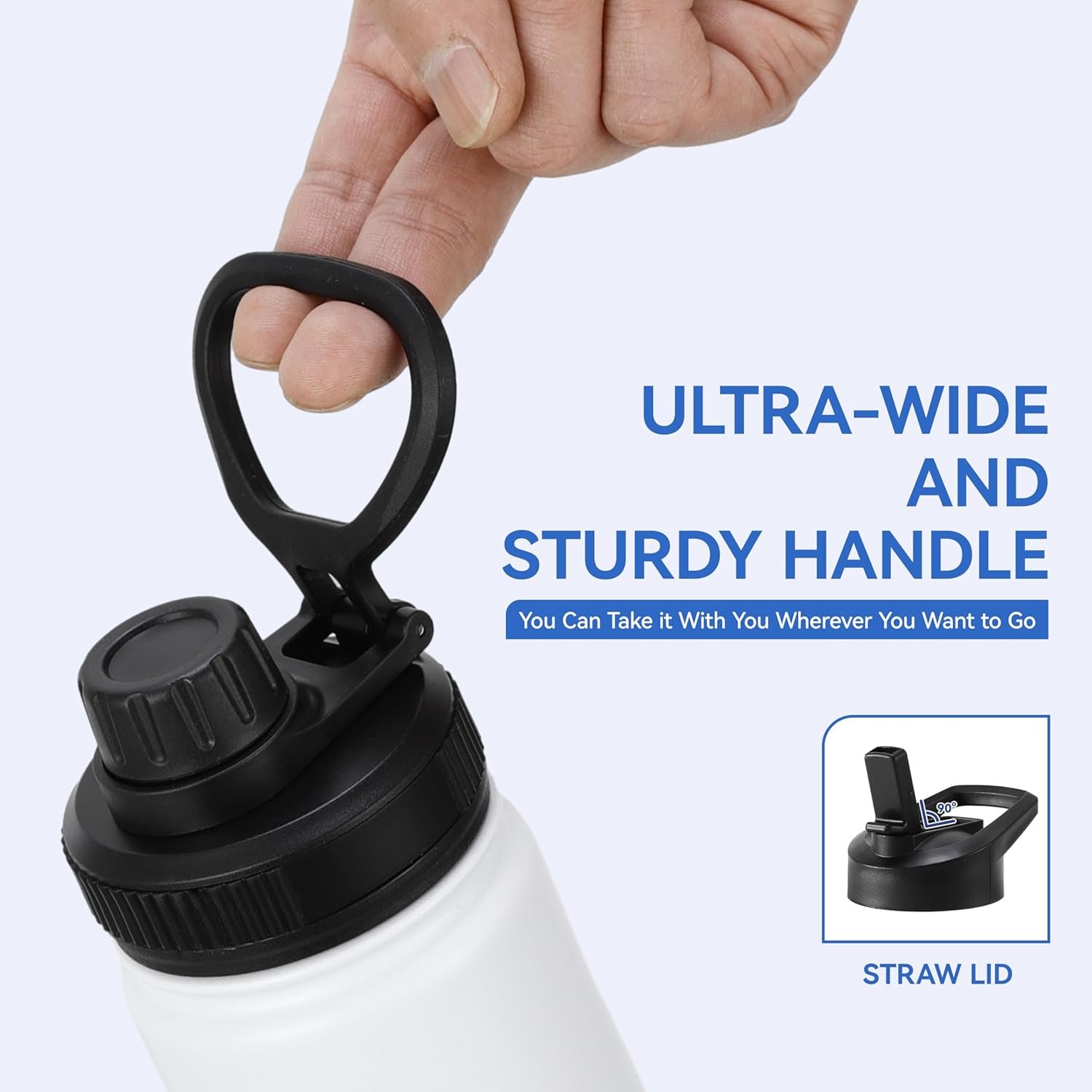 Leak Proof: Two kinds of lids: Spout lid and flip lid, both of which can effectively prevent leaks. And the wide handle of the spout lid allows you to hold three fingers, reducing the pressure on your fingers when walking