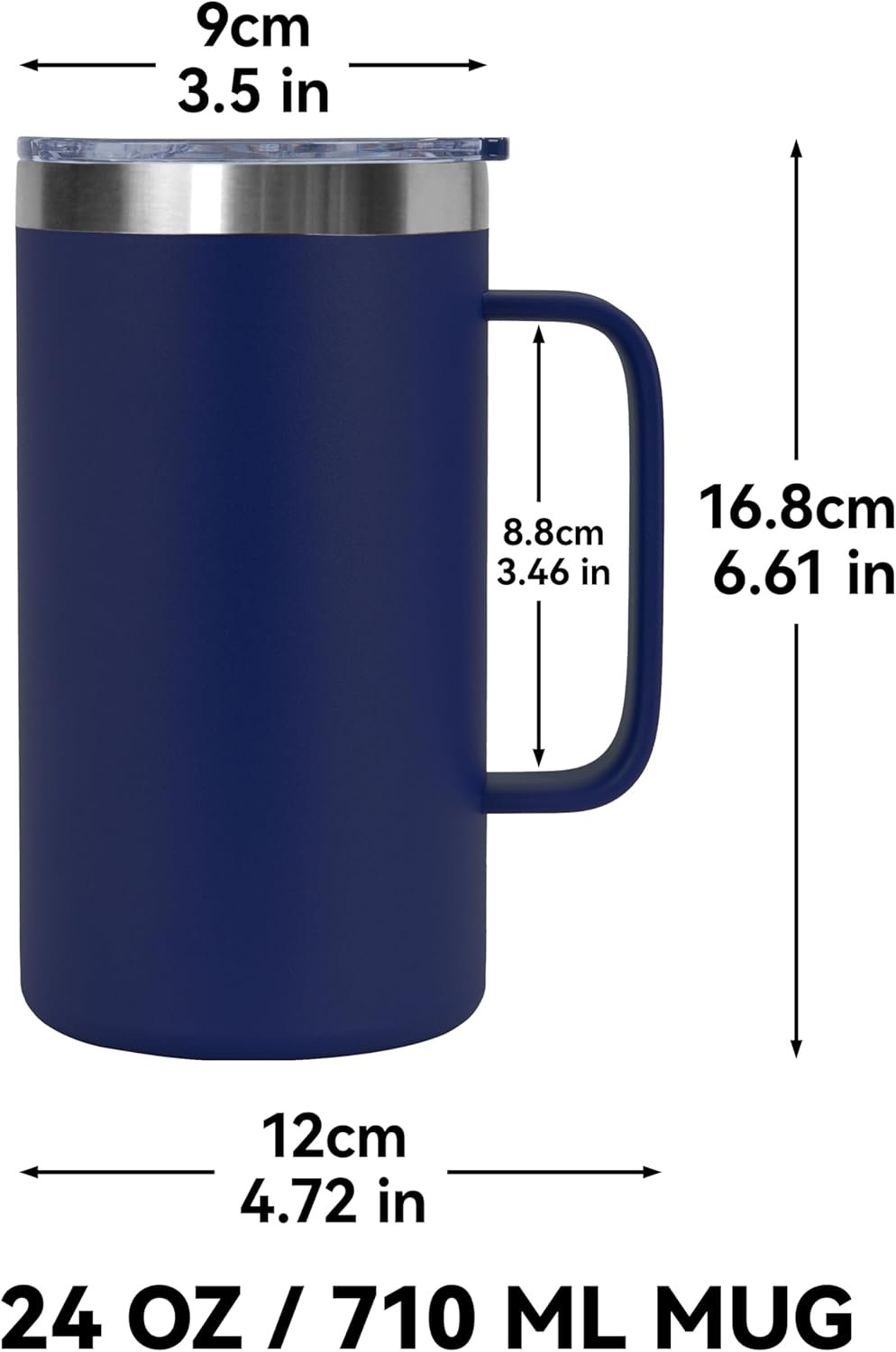 DOMICARE 24oz Mug with Handle and Lid, Stainless Steel Coffee Mug, Reusable Insulated Cup, Travel Mug with Handle, Double Wall Vacuum Coffee Tumbler for Men and Women, Navy, Pack 1