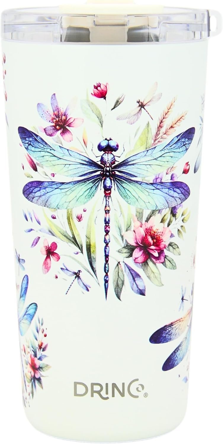 Drinco – 20 oz Stainless Steel Tumbler | Double Walled Vacuum Insulated Mug With Lid, 2 Straws, For Hot & Cold Drinks (20oz Dragonfly)