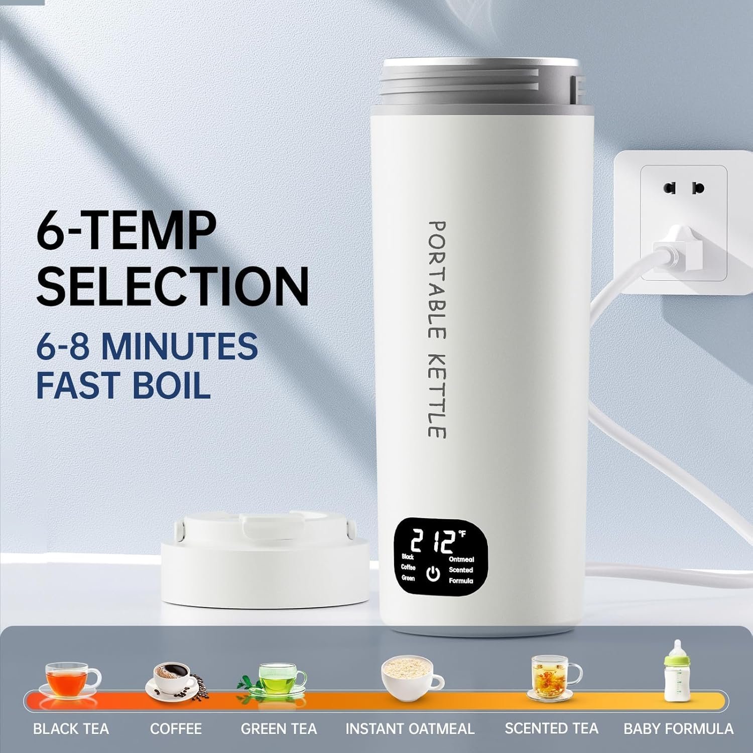 Dual Voltage Portable Electric Kettle Travel Hot Water for Tea, Coffee, 6 Temperature Controls and LCD Display, 316 Stainless Steel and 450ml, Auto Shut Off & Boil Dry Protection