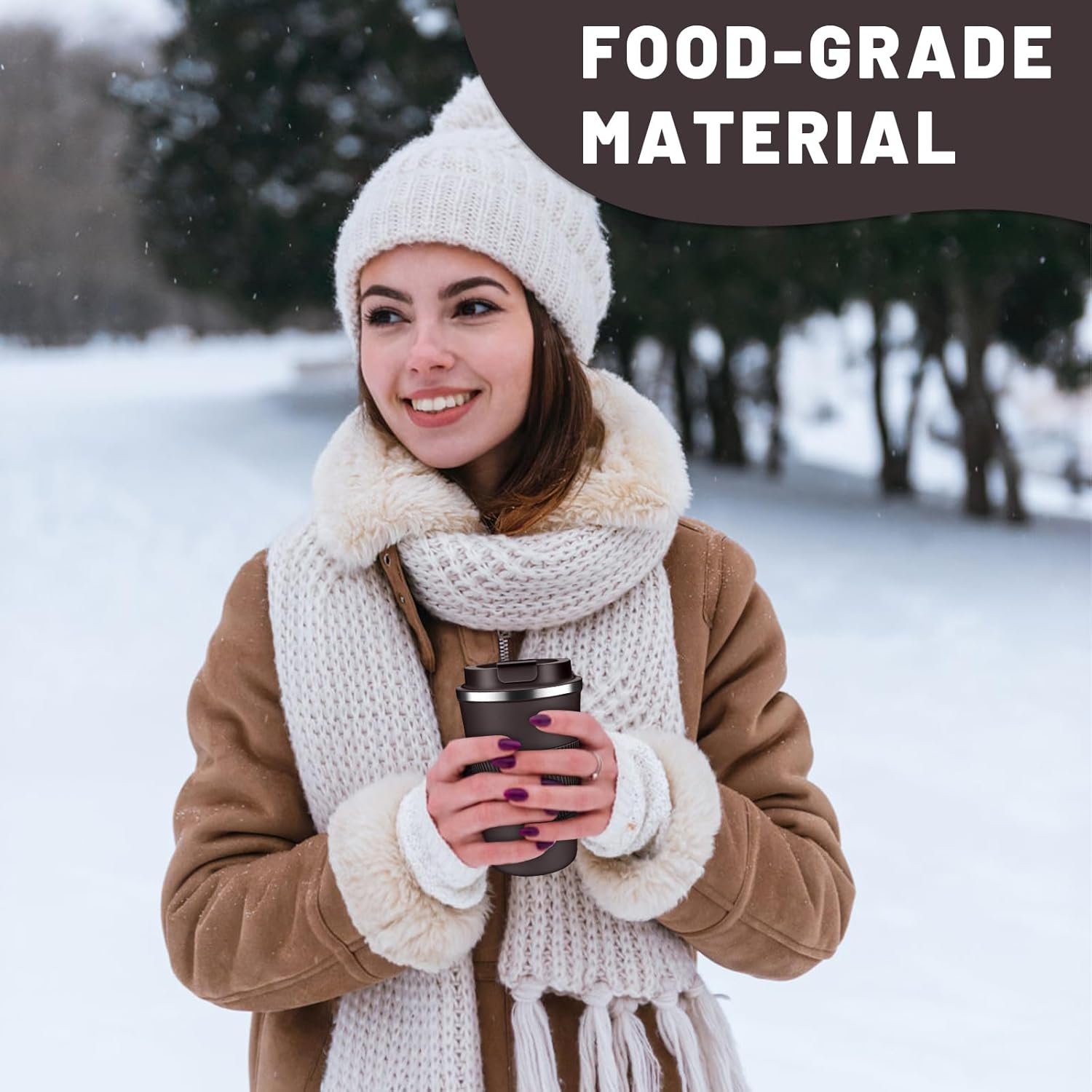 BPA-Free, Food-Grade Material: Made of eco-friendly stainless steel, food-grade material, non-toxic, free of chemicals and toxins, reusable for peace of mind (not recommended for use in the dishwasher), and using reusable coffee cup instead of disposable plastic bottles can better help protect the environment